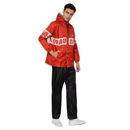 Introducing the THE CLOWNFISH Road Rider Men's Waterproof Raincoat, your ultimate companion for wet weather. This reversible rain suit is crafted from premium waterproof polyester with a double coating, ensuring you stay dry no matter the downpour. Designed in a vibrant Road Rider Red, it includes a hood, an inner mobile pocket, and comes in XX-Large size, making it perfect for the modern man on the go.