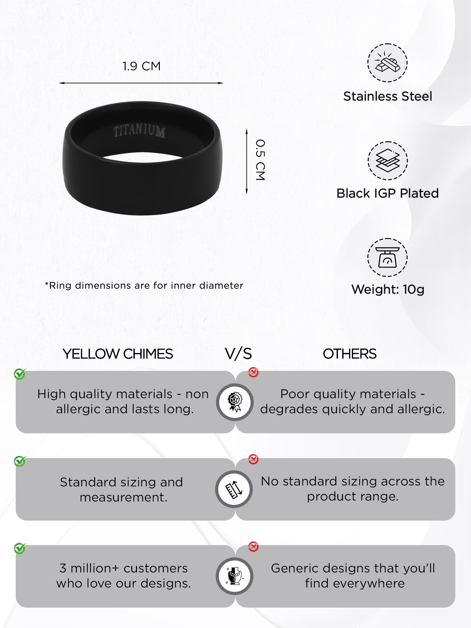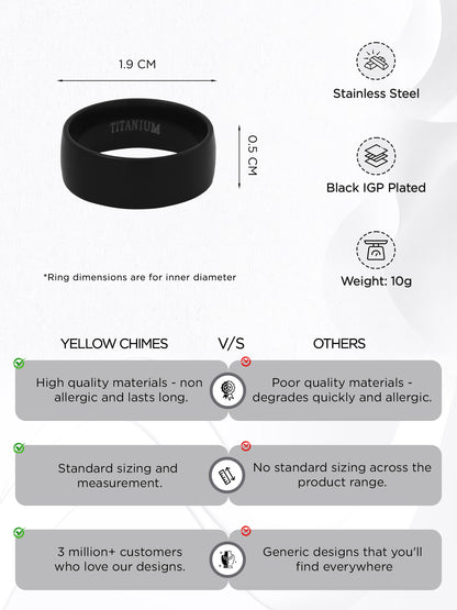 Yellow Chimes Black Rings For Men | Pack of 1 Stainless Steel Band Ring | Black Toned Finger Ring for Boys | Ideal Gift For Men and Boys