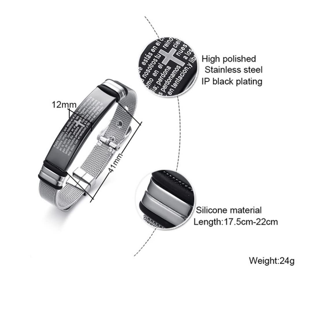 Bracelet for Men Western Style Stainless Steel Never Fading Cross Silver Black Bracelet for Men & Boys