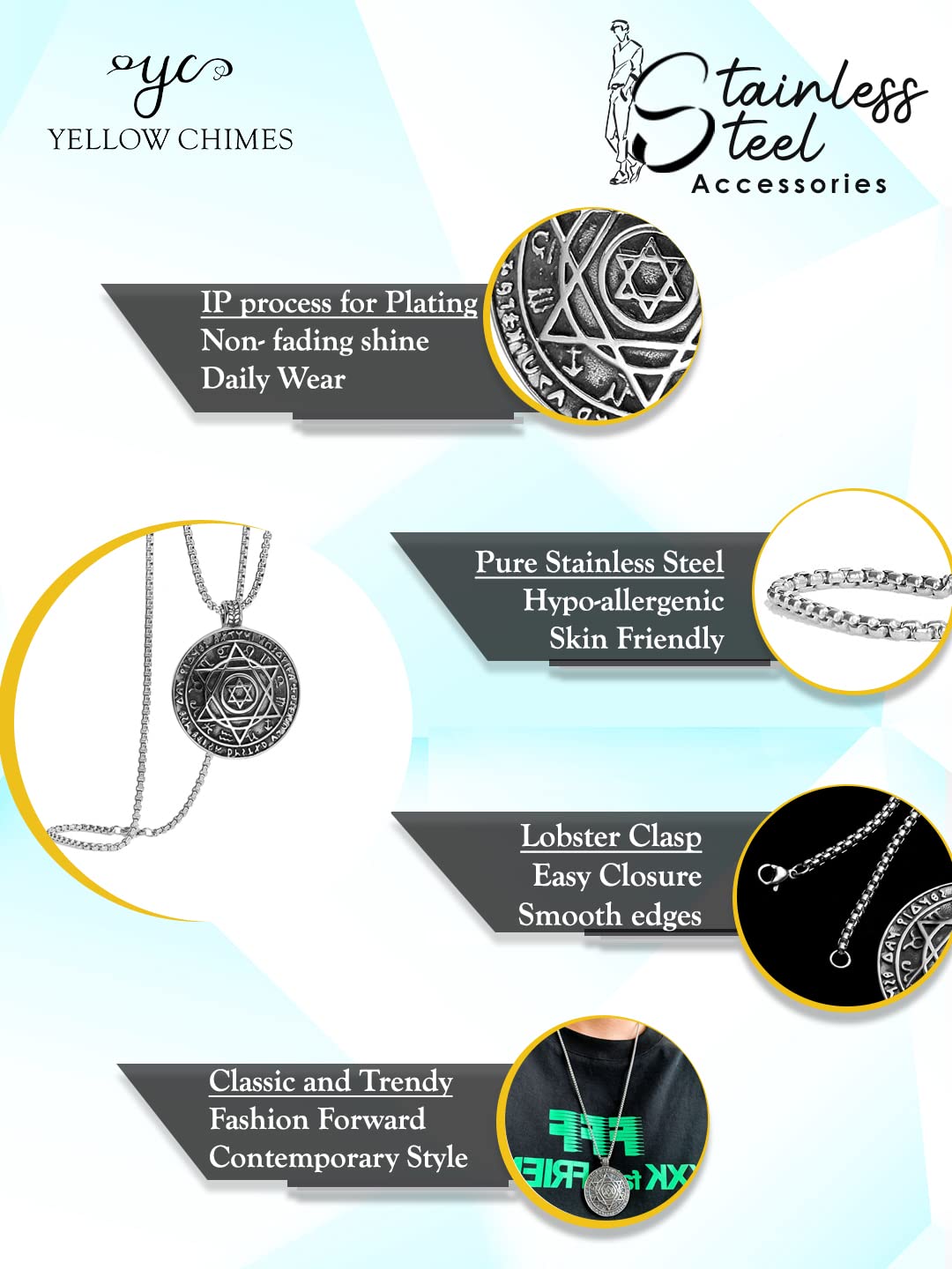 Chain Pendant for Men | Fashion Silver Pendants for Men | Om Shaped Pendent Necklace | Stainless Steel Chain for Boys | Accessories for Men | Birthday Gift for Men & Boys