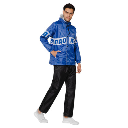 Introducing the Road Rider Men's Waterproof Raincoat by Clownfish, your ultimate protective gear for wet weather. Made from premium waterproof polyester with a double coating, this raincoat is designed to keep you dry and stylish. This reversible raincoat is available in XX-Large size and comes in a striking Royal Blue color. It features an adjustable hood, high collars, and an inner mobile pocket, making it the perfect companion for various occasions.