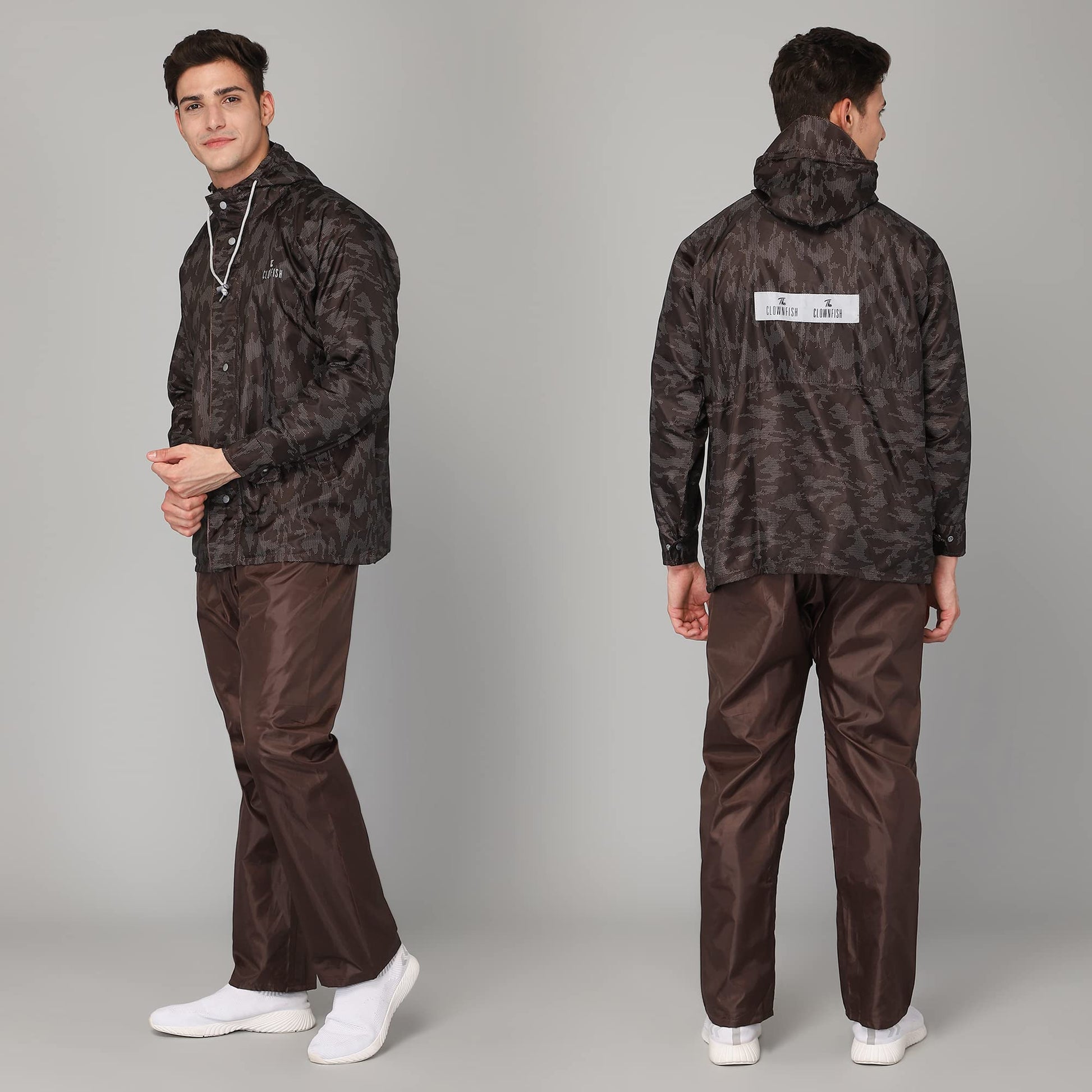 Introducing the Francis Series Men's Waterproof Polyester Double Coating Reversible Raincoat by Clownfish, your perfect companion for rainy days. This versatile raincoat features high-quality, waterproof polyester with a double coating, ensuring you stay dry while looking great. Available in a comfortable size of 3XL, this brown raincoat provides excellent coverage with its spacious design. Plus, it comes with a printed plastic pouch with a rope for easy storage and transport.