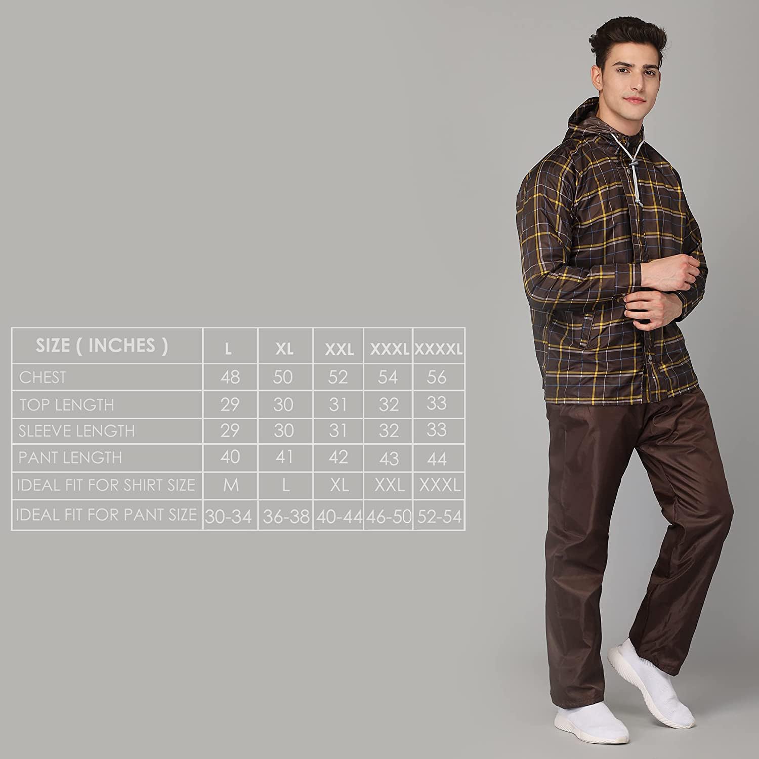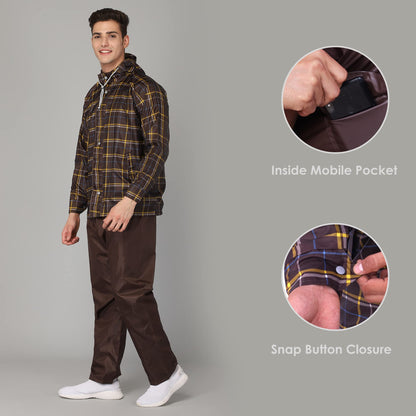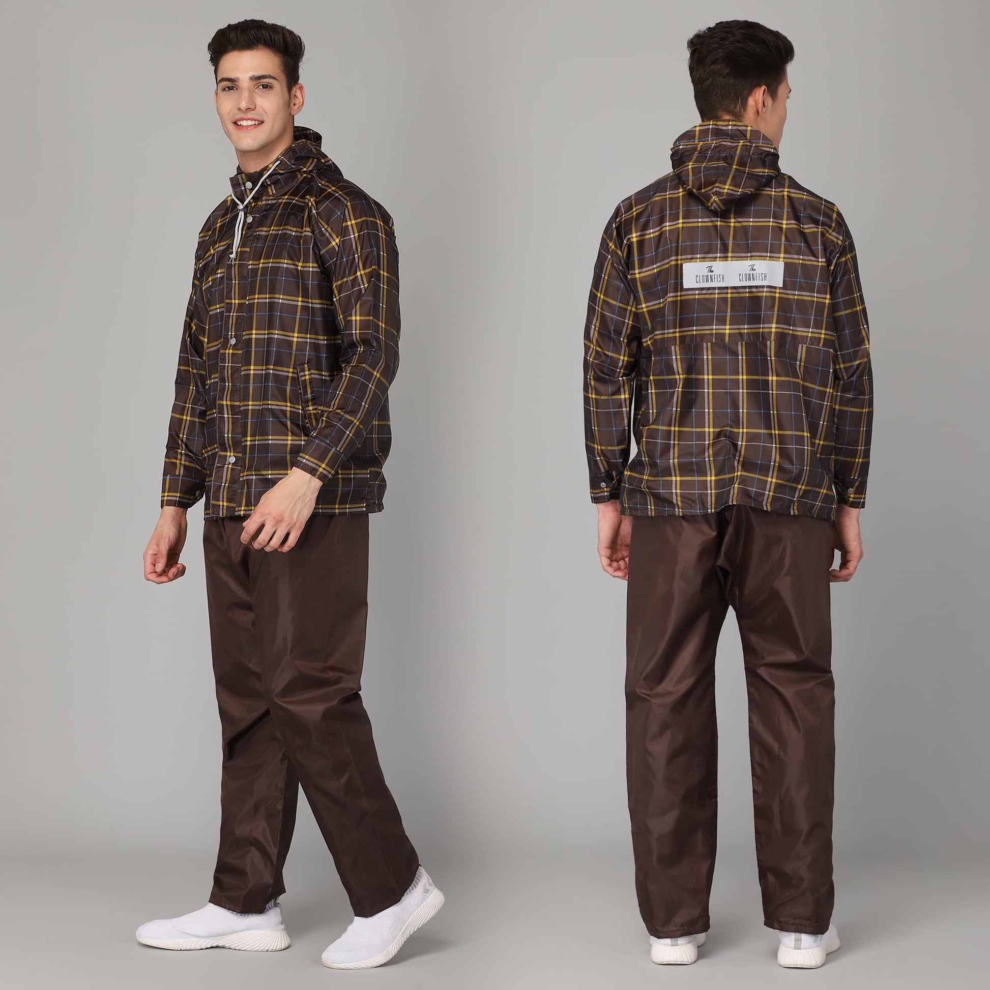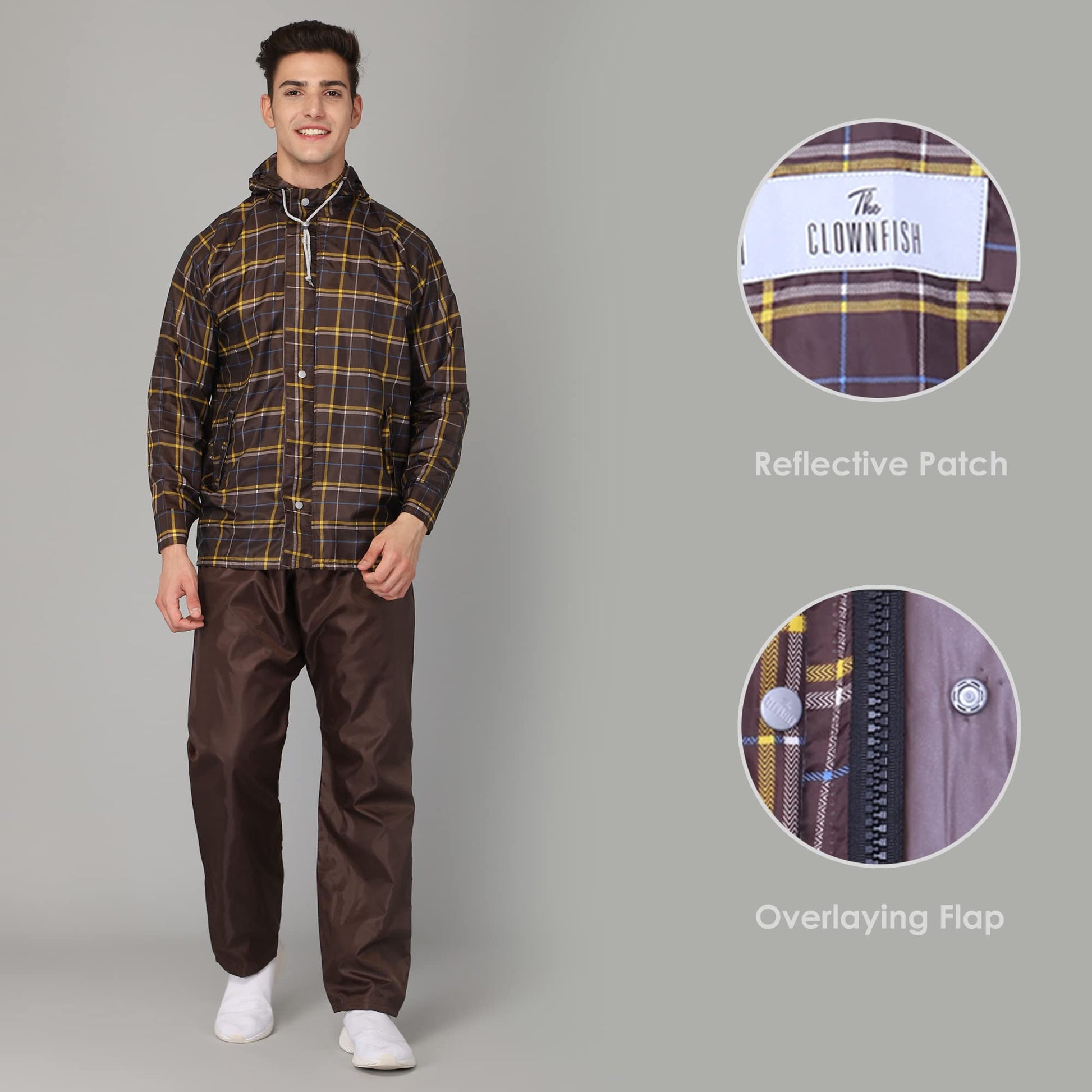 THE CLOWNFISH Monarch Pro Series Men's Waterproof Polyester Double Coating Reversible Raincoat with Hood and Reflector Logo at Back for Night Travelling. Set of Top and Bottom (Dark Brown, XL)