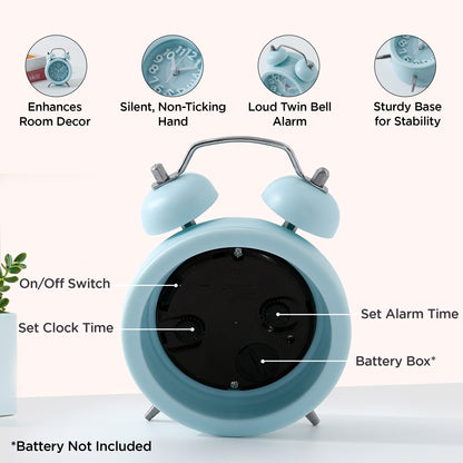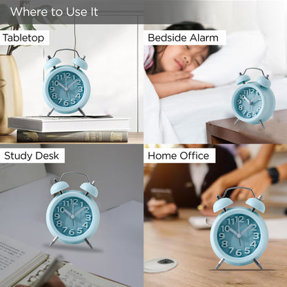 Alarm Clock (10cm) |Alarm Clock for Students |Loud Alarm Clock for Heavy Sleepers |Mini Alarm Clock for Kids |Alarm Clock for Bedroom |Wake Up Timer | Twin Bell Table Clock for Study Table- Blue