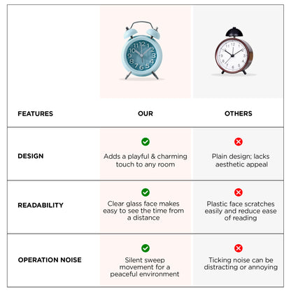 UMAI Alarm Clock (10cm) |Alarm Clock for Students |Loud Alarm Clock for Heavy Sleepers |Mini Alarm Clock for Kids |Alarm Clock for Bedroom |Wake Up Timer | Twin Bell Table Clock for Study Table- Blue