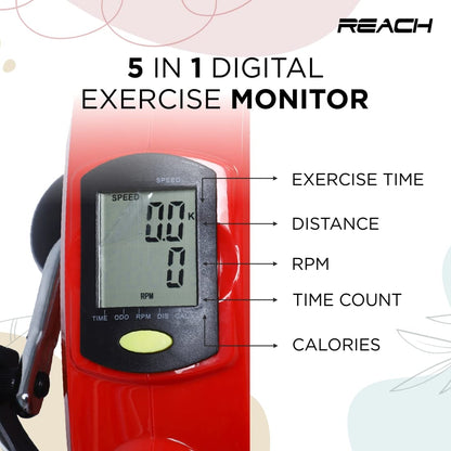 Strauss Digital Pedal Exercise Machine | Mini Fitness Cycle for Home with Fixing Strap | Foldable and Portable | Suitable for Light Exercise of Legs, Arms, & Physiotherapy at Home