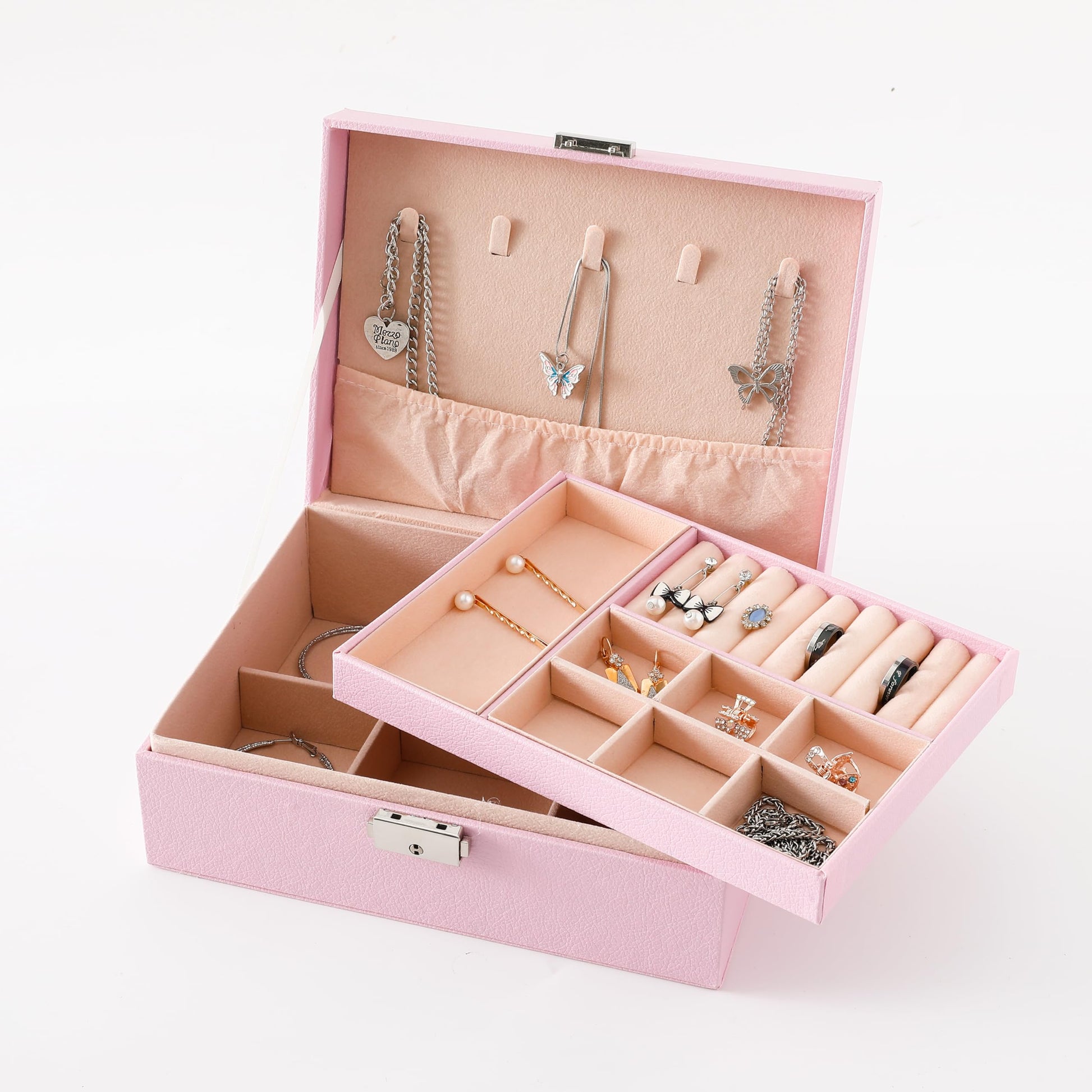 • DOUBLE-LAYERED STORAGE: Features a removable tray for optimal organization of your jewelry items.