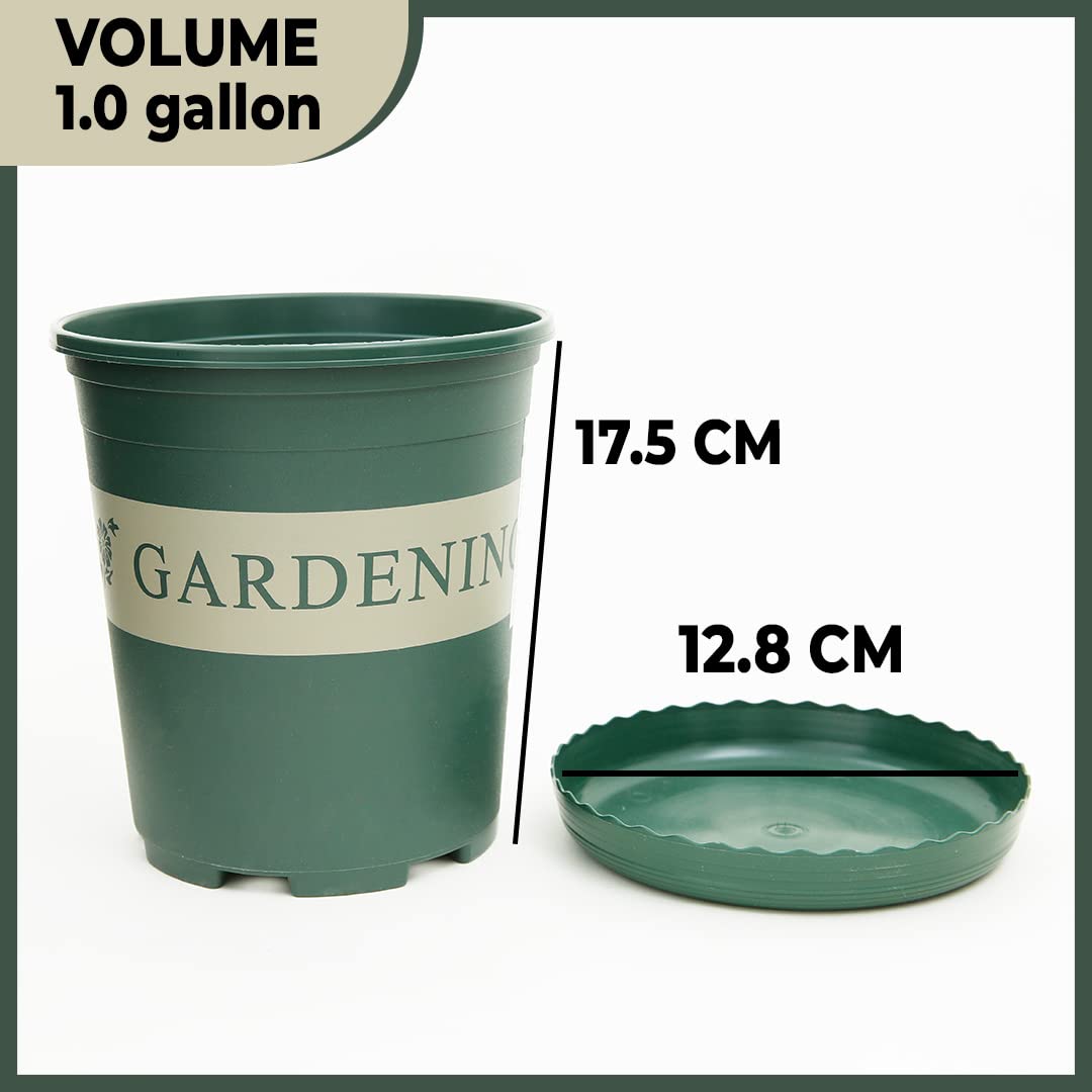 Mini Plant Pot: Durable Plastic Flower Pot with Tray | 16x12.8cm | Green