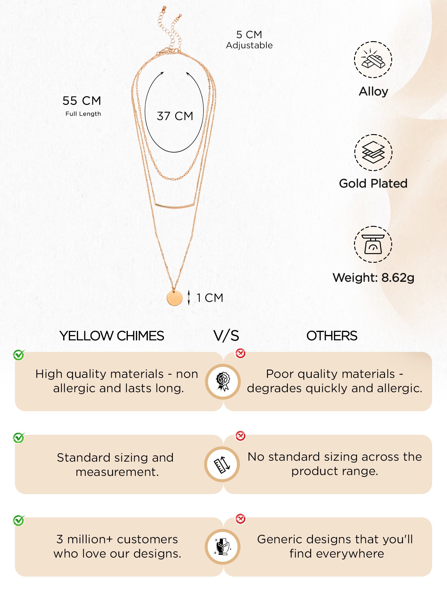• Trendy Design: Multi-layered chain for a chic and modern look.