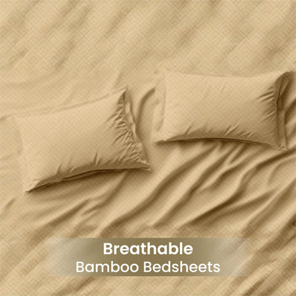 Bamboo Pack of 1: Ultra Soft Geometric Printed Bedsheet | 90x100 Inches | Beige