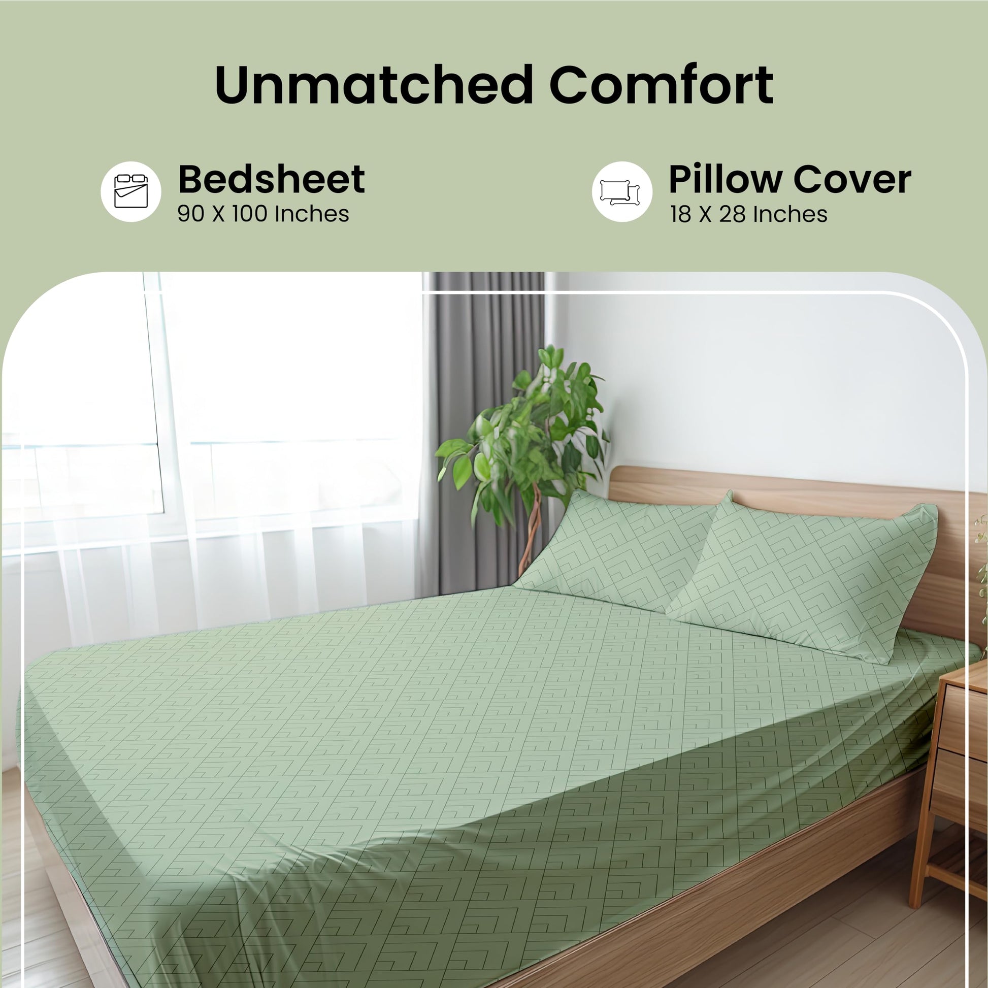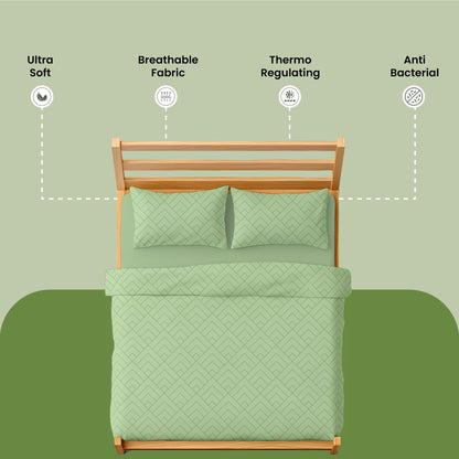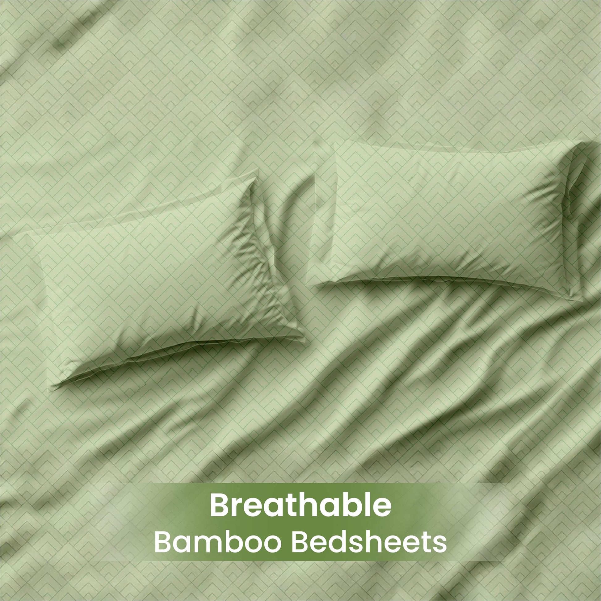 This bedsheet is made from genuine bamboo material, offering a natural cooling effect ideal for warm nights. Thanks to its hypoallergenic and anti-microbial properties, it’s suitable for those with sensitive skin or allergies. Plus, the elegant sage green color and geometric print add an aesthetic touch to any bedroom setting.
