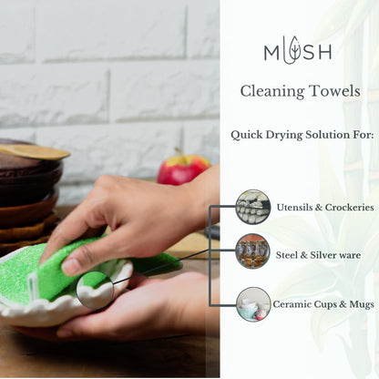 Upgrade your cleaning experience with the Mush Bamboo Super Absorbent Cleaning Cloths and enjoy a cleaner, fresher environment!