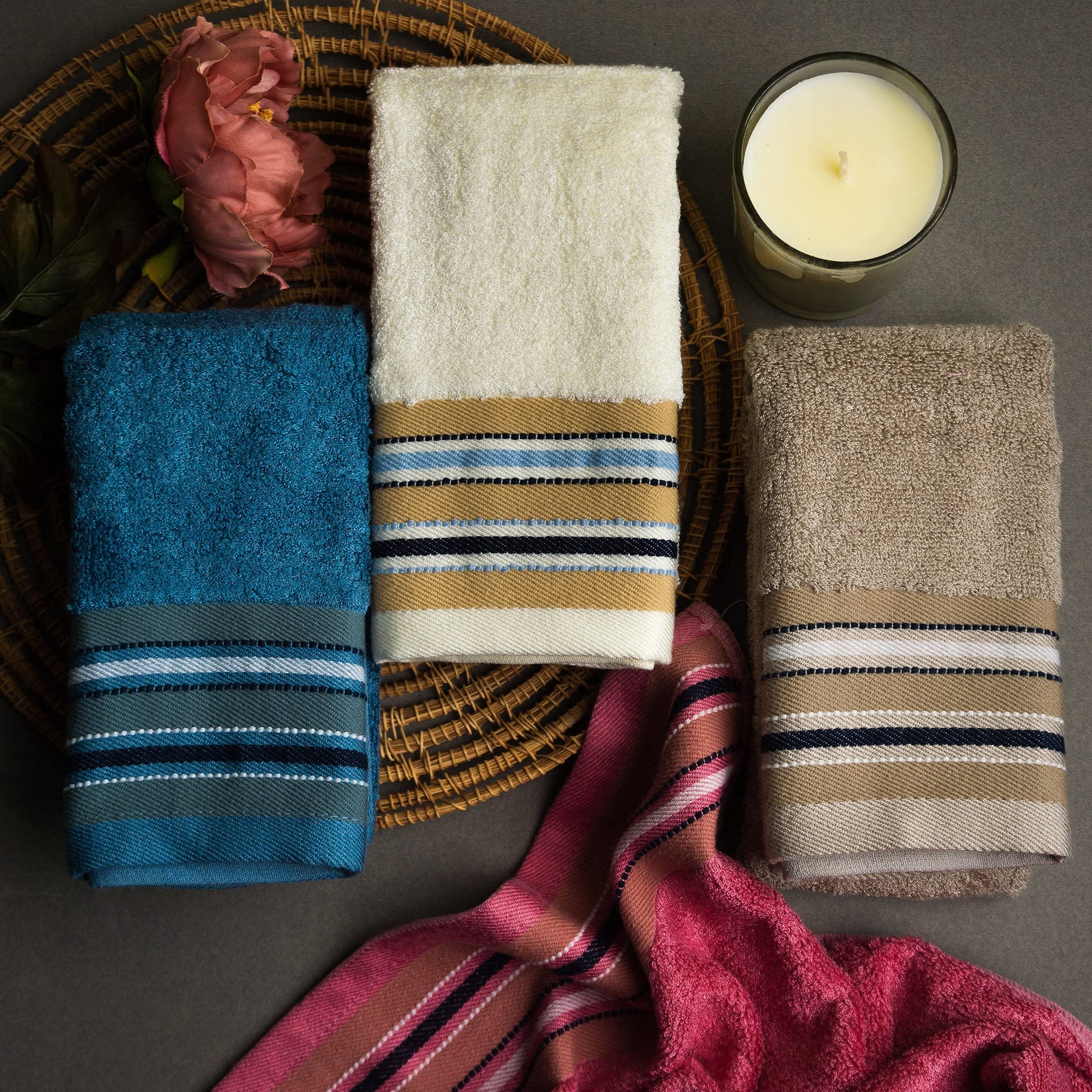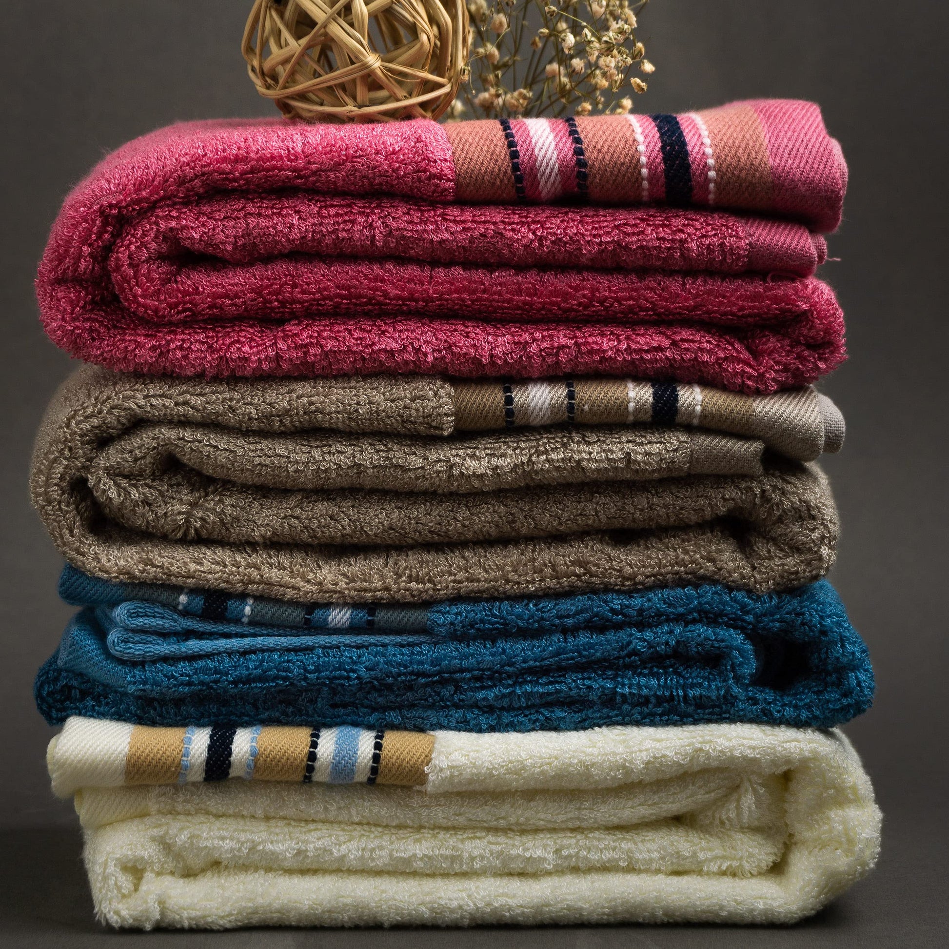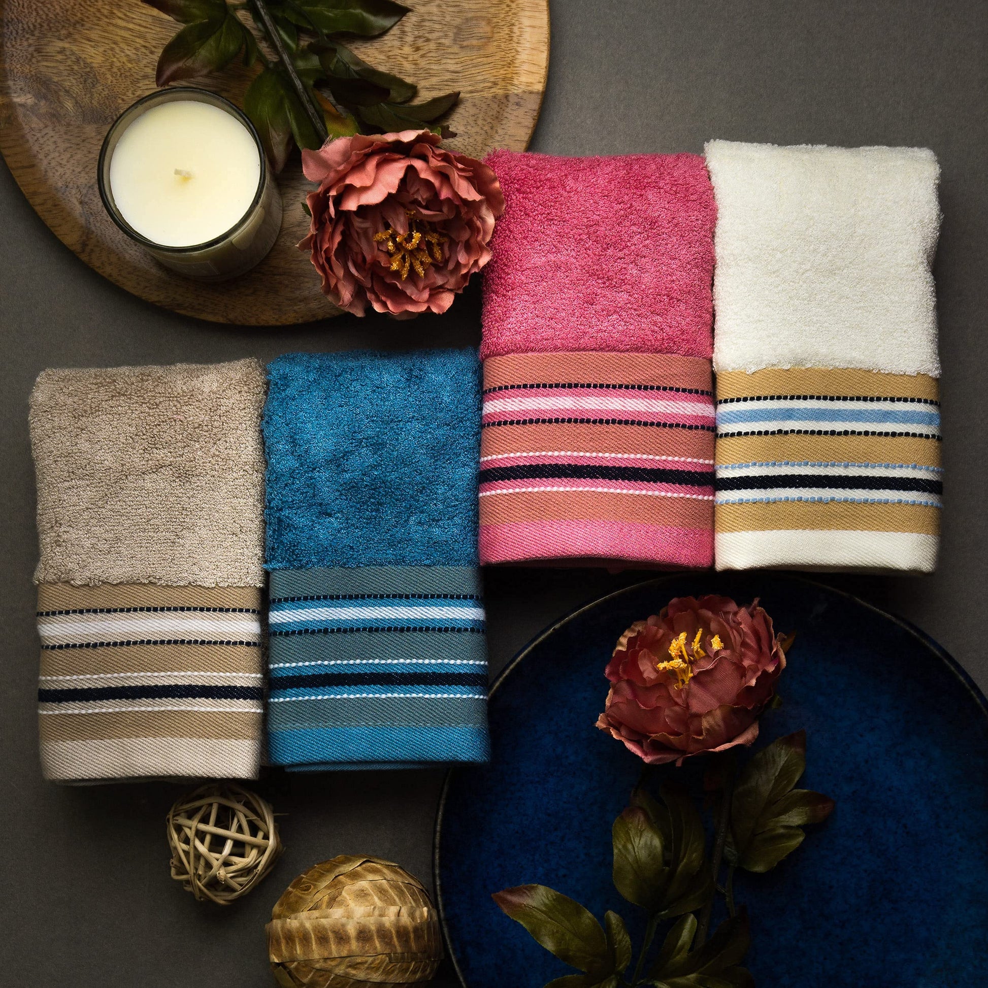 • Elegant Design: Available in stunning colors like Ruby Red, Emerald Blue, Pearl White, and Royal Beige, these towels add a touch of elegance to any setting.