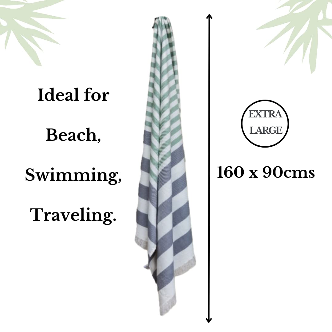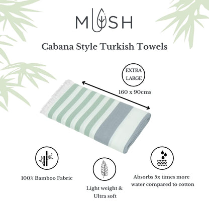 Mush Extra Large Cabana Style Turkish Towel Made of Bamboo - (90 x 160 cms) - Ideal for Beach, Bath, Pool etc (Light Green & Grey, 1)