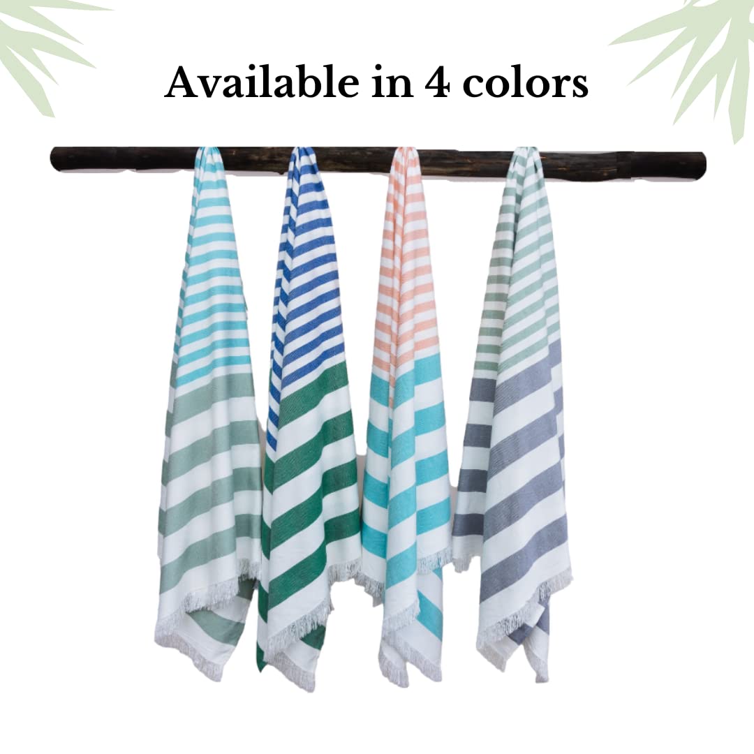 Experience the ultimate softness of our Extra-Large Cabana Striped Turkish towel as it embraces your skin completely like silk and cashmere. It comes in trendy beach colors like peach, light green, blue, grey, turquoise & green.