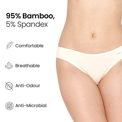 Mush Womens Ultra Soft Bamboo Modal Bikini Brief || Breathable Panties || Anti-Odor, Seamless, Anti Microbial Innerwear (M, Beige)