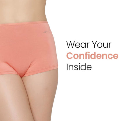 Womens Ultra Soft High Waist Bamboo Modal Boyshorts || Breathable Panties || Anti-Odor, Seamless, Anti Microbial Innerwear (L, Peach)