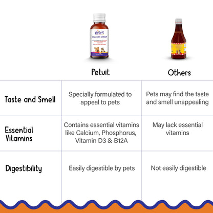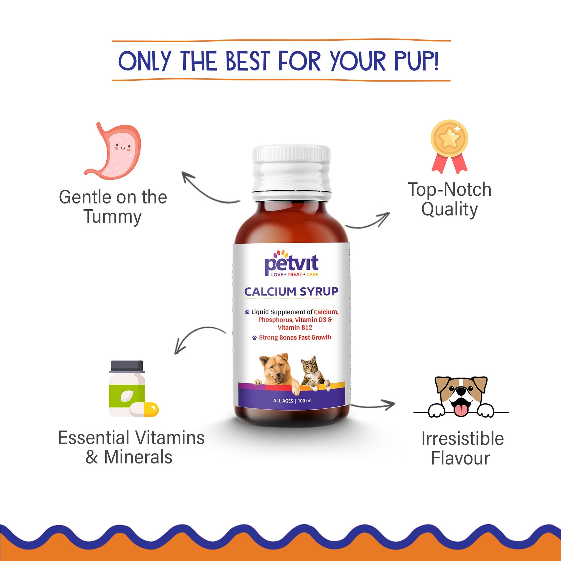 Calcium Syrup for Dogs with Calcium, Phosphorus, Vitamin D3 & B12 for Dog Stronger Bones, Teeth & Growth in Pets for All Age Group – 100ml