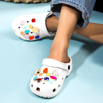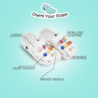Introducing the Shoe Charms Set by Yellow Chimes! This set includes 10 pairs of colorful and stylish charms made from high-quality stone material, designed to fit perfectly into any standard clog hole. Whether you're styling up your Crocs or giving your shoes a unique look, these charms are a fantastic way to express your personality and individuality.