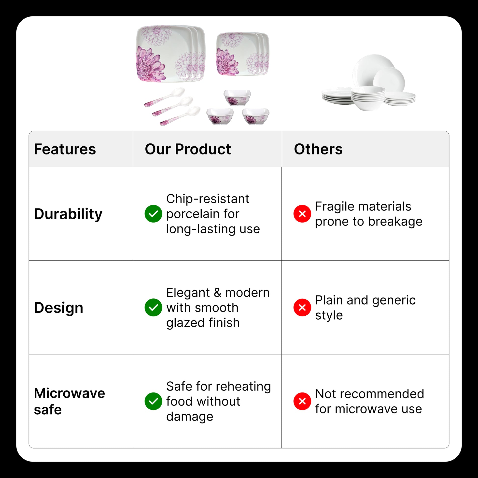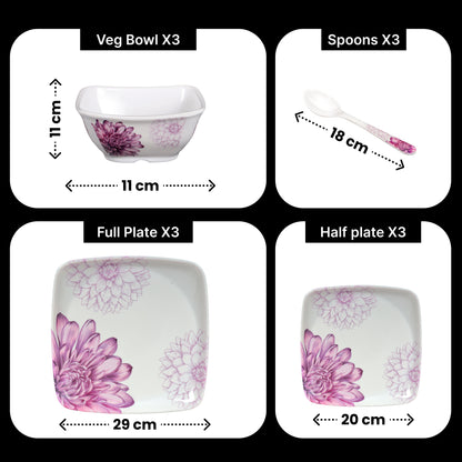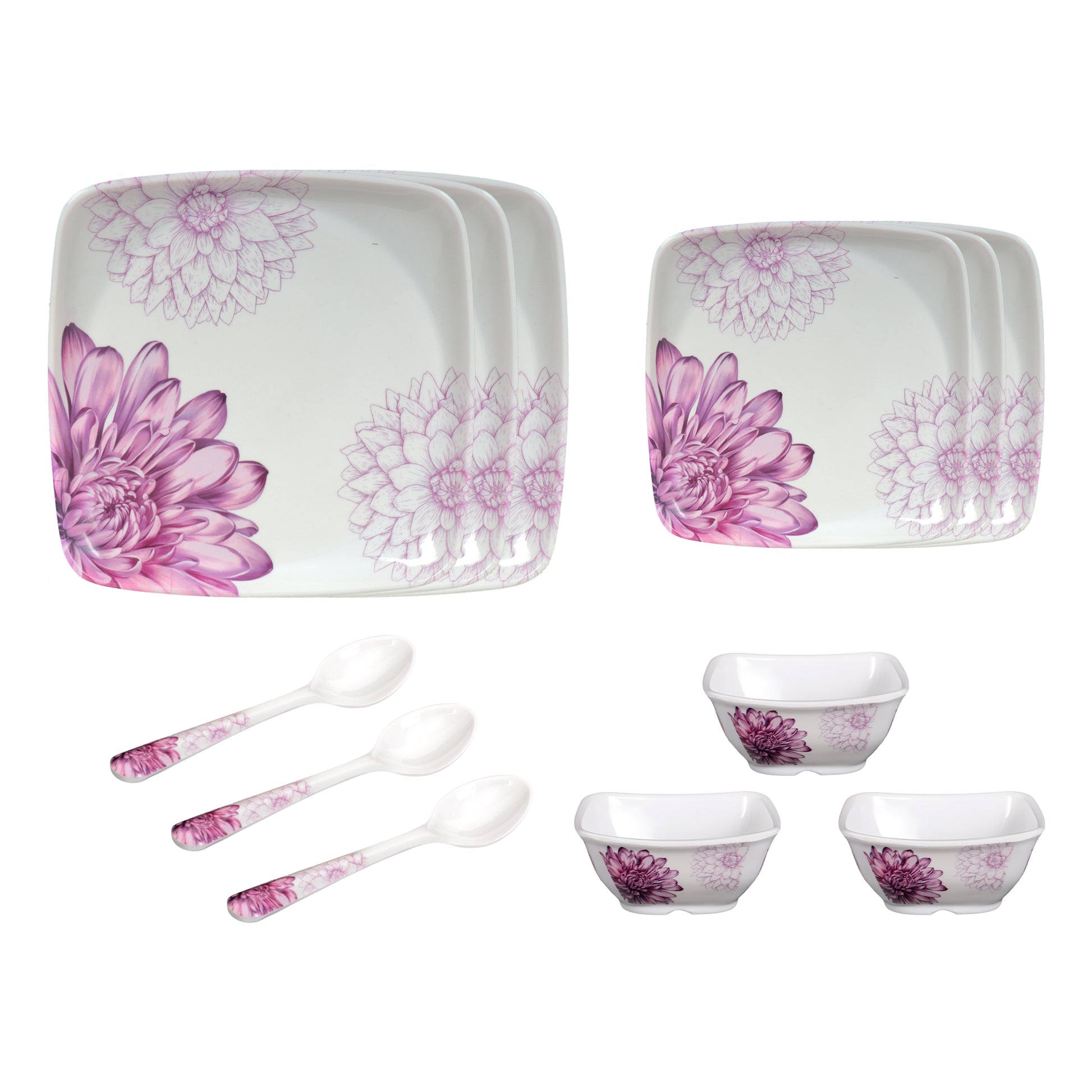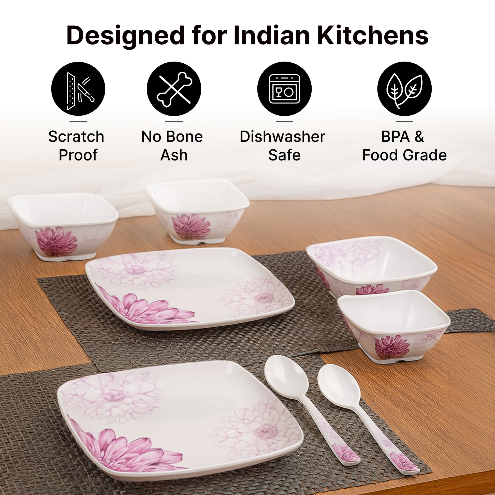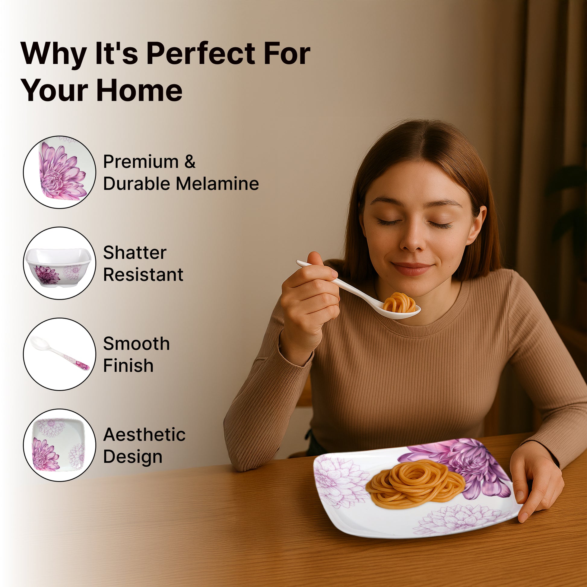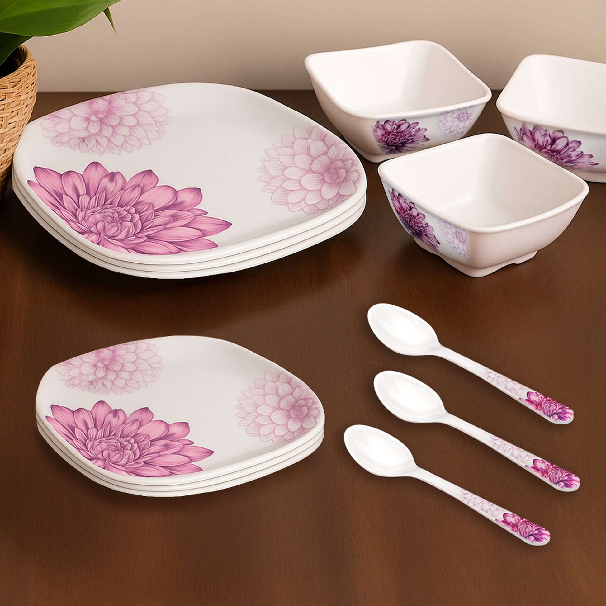 Pack of 12: Floral Melamine Dinner Set | 4 Serving Pieces | Pink & White