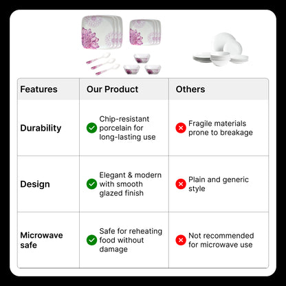 • DAMAGE-FREE ASSURED: Durable material ensures break resistance, guaranteeing your dinner set arrives intact and ready for enjoyment.