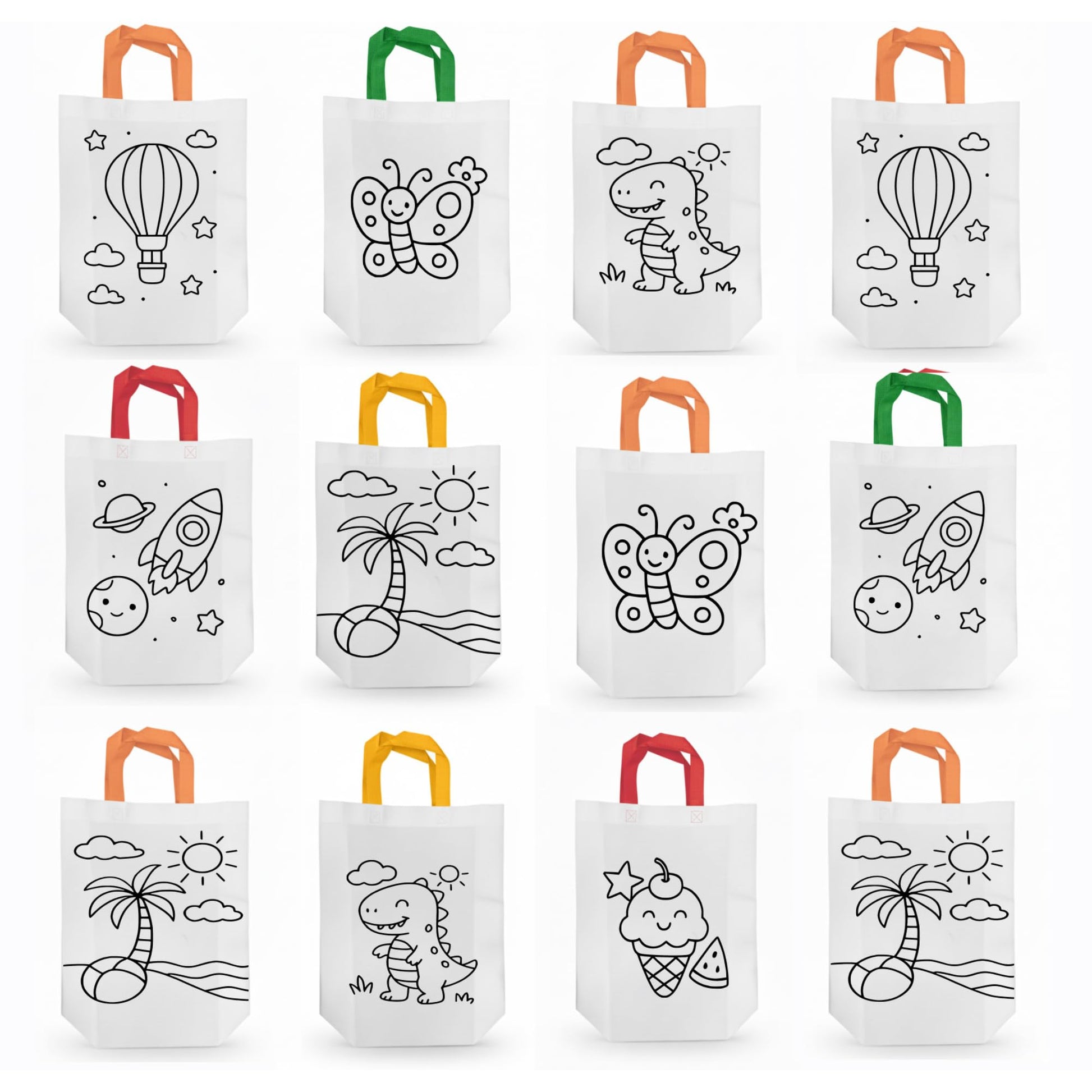 - FUN & CREATIVE: The DIY colouring theme encourages creativity and makes the bags fun for kids.