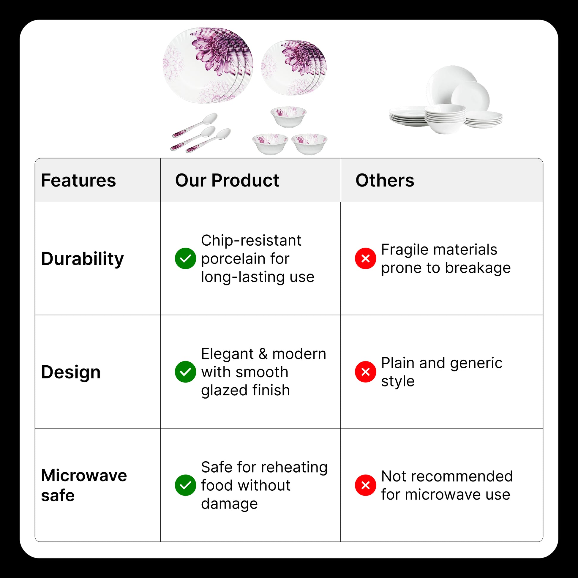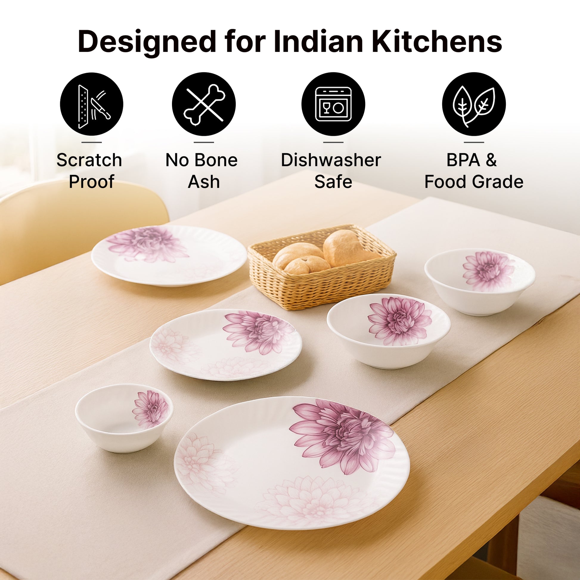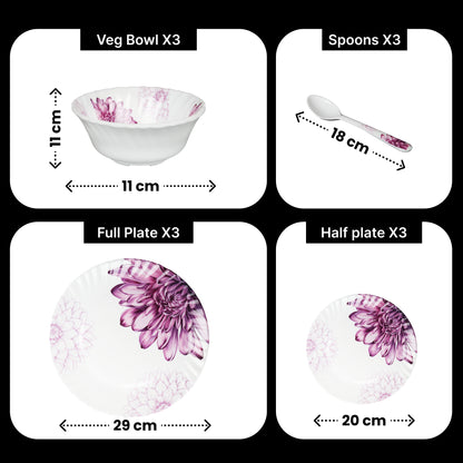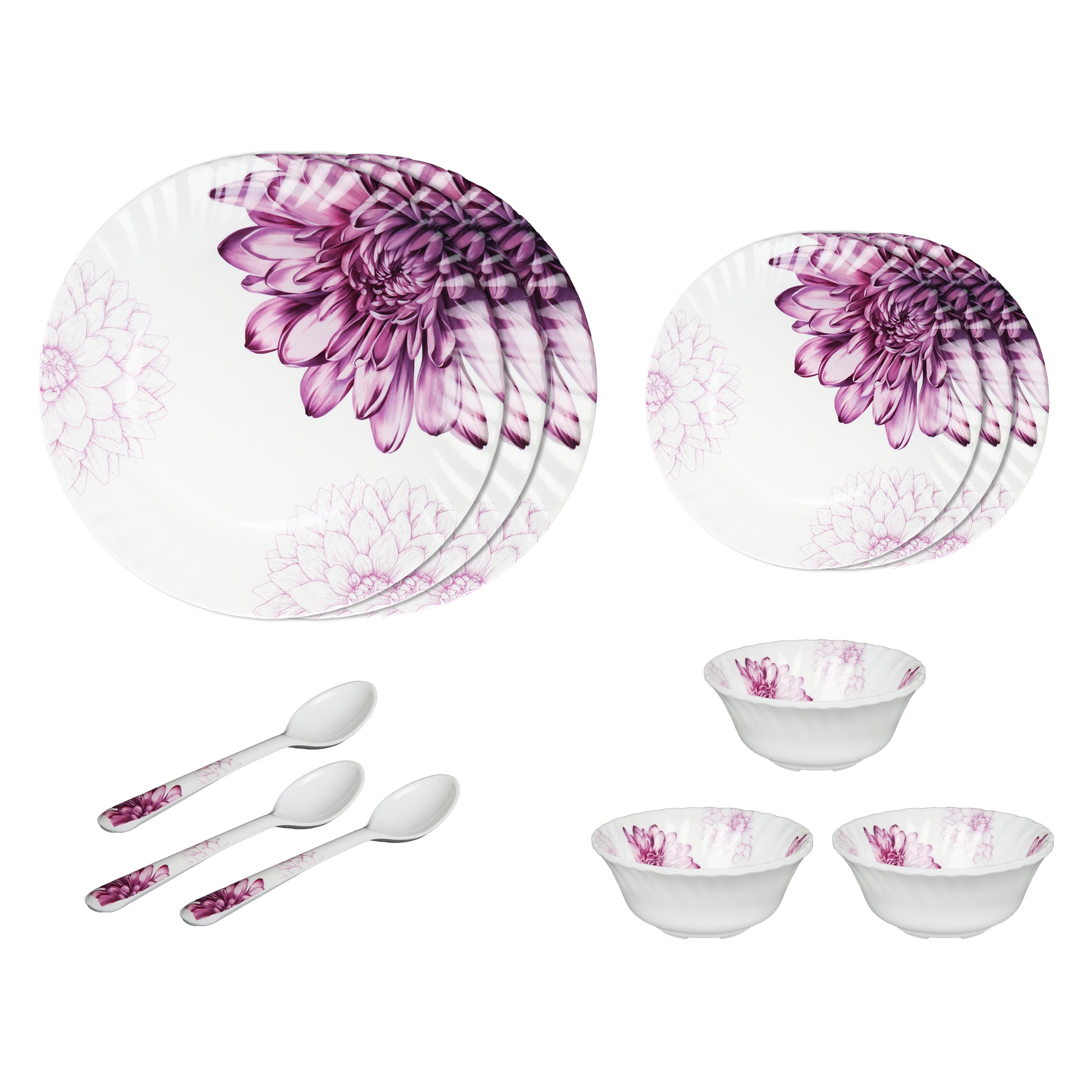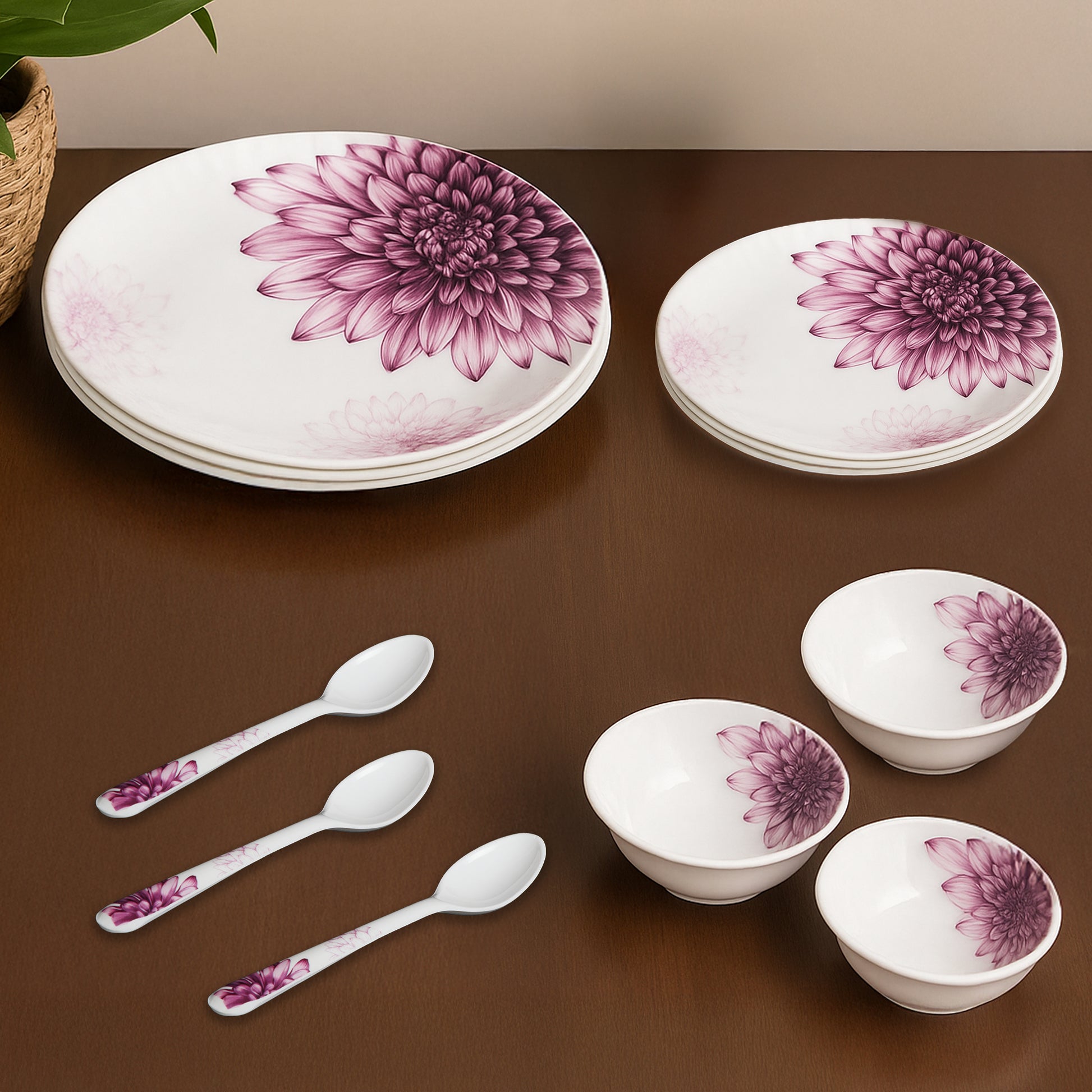 Pack of 12: Purple White Melamin Dinner Set | Serves 4 | Floral Design
