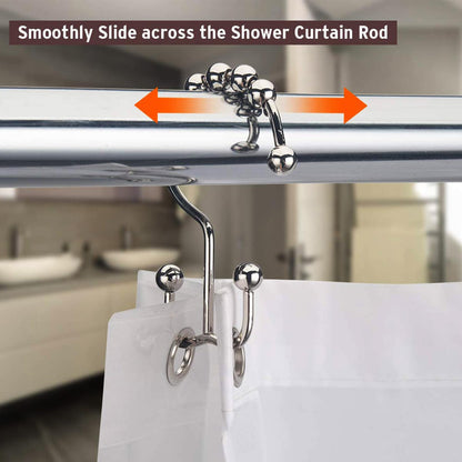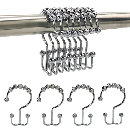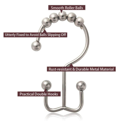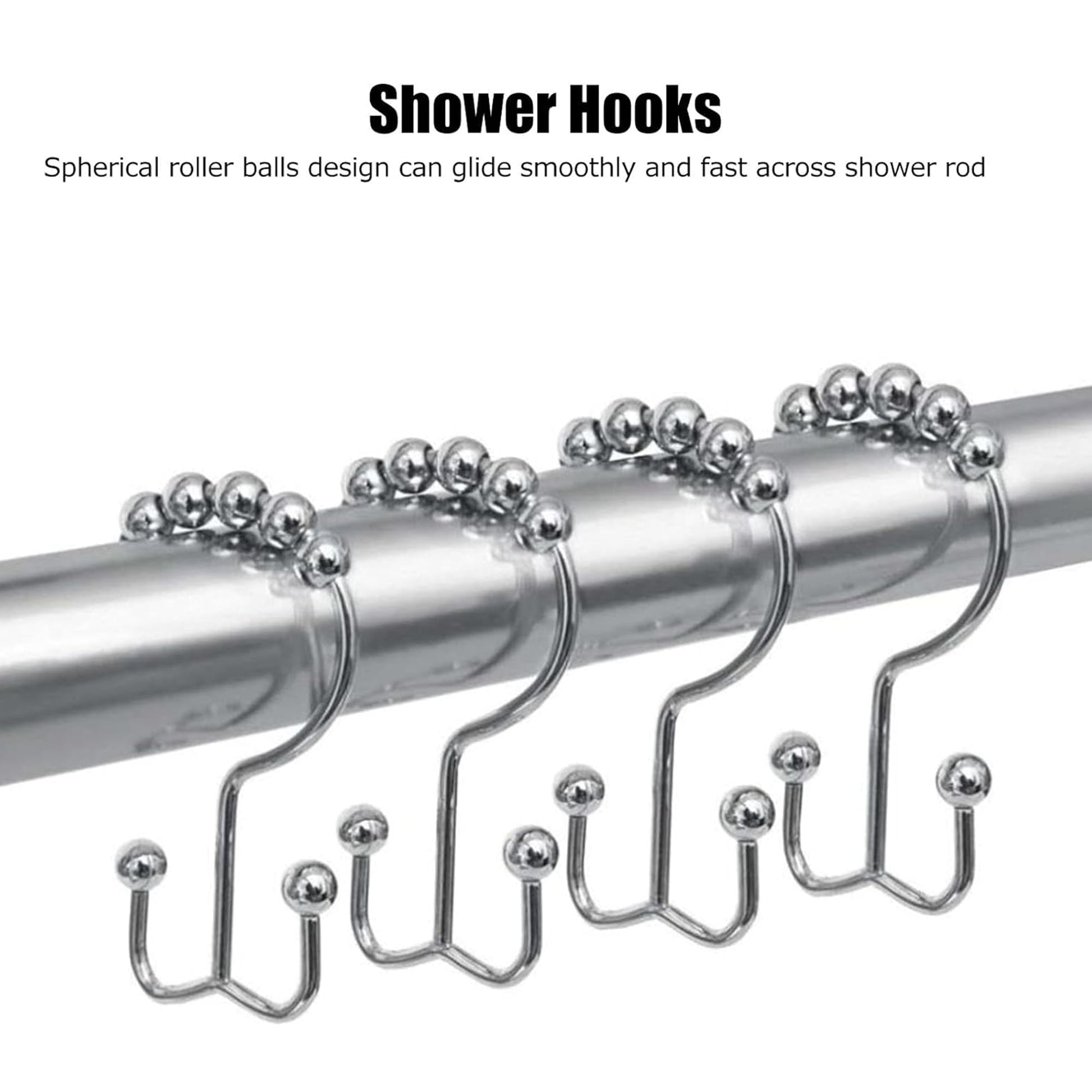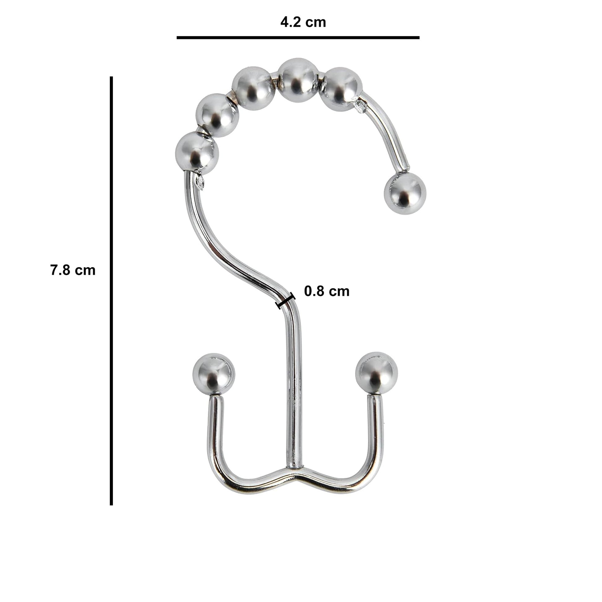 Kuber Industries Stainless Steel Hook for Curtain Hanging | Roller Ball Shower Curtain Clips Ring & Parda Hook for Bathroom, Door & Window | Rainy Curtain Hooks for Balcony | Silver