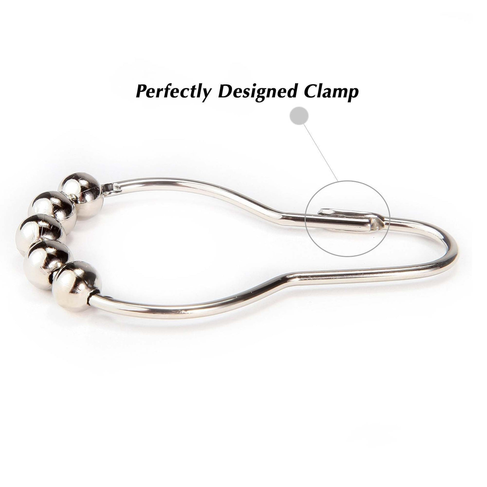 Kuber Industries Stainless Steel Hook for Curtain Hanging | Shower Curtain Clips Ring & Parda Hook for Bathroom, Window & Door | Rainy Curtain Hooks for Home Balcony | Silver