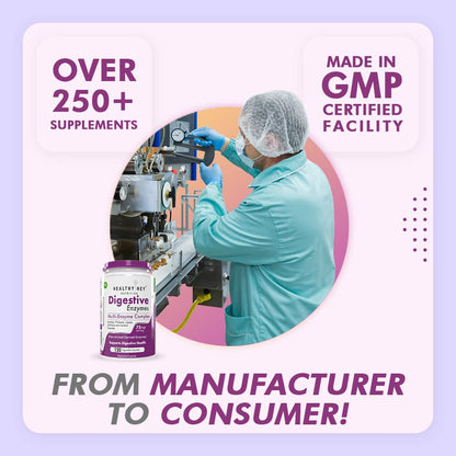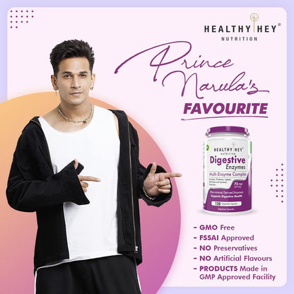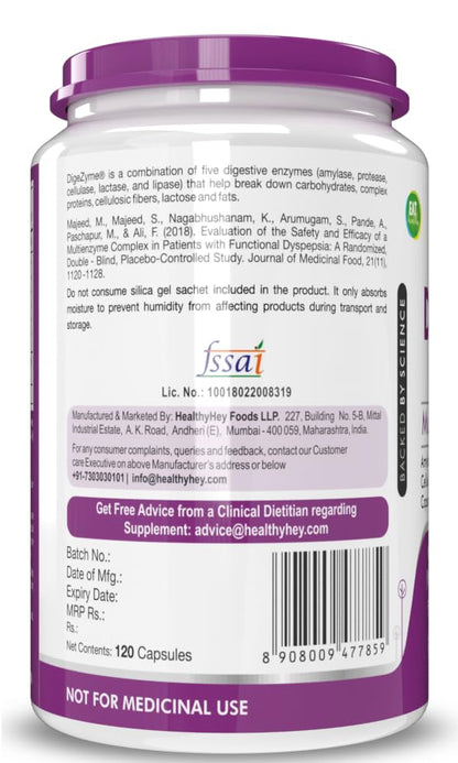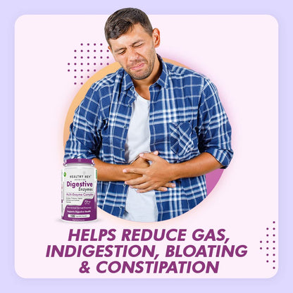 Healthy Hey Nutrition Digestive Enzymes Capsules - Amylase, Lipase, Protease, Multi-Enzyme Complex Tablet -Pack of 120 Vegetable Capsules