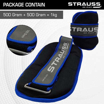 Strauss Adjustable Ankle/Wrist Weights 0.5 KG X 2 | Ideal for Walking, Running, Jogging, Cycling, Gym, Workout & Strength Training | Easy to Use on Ankle, Wrist, Leg, (Blue)