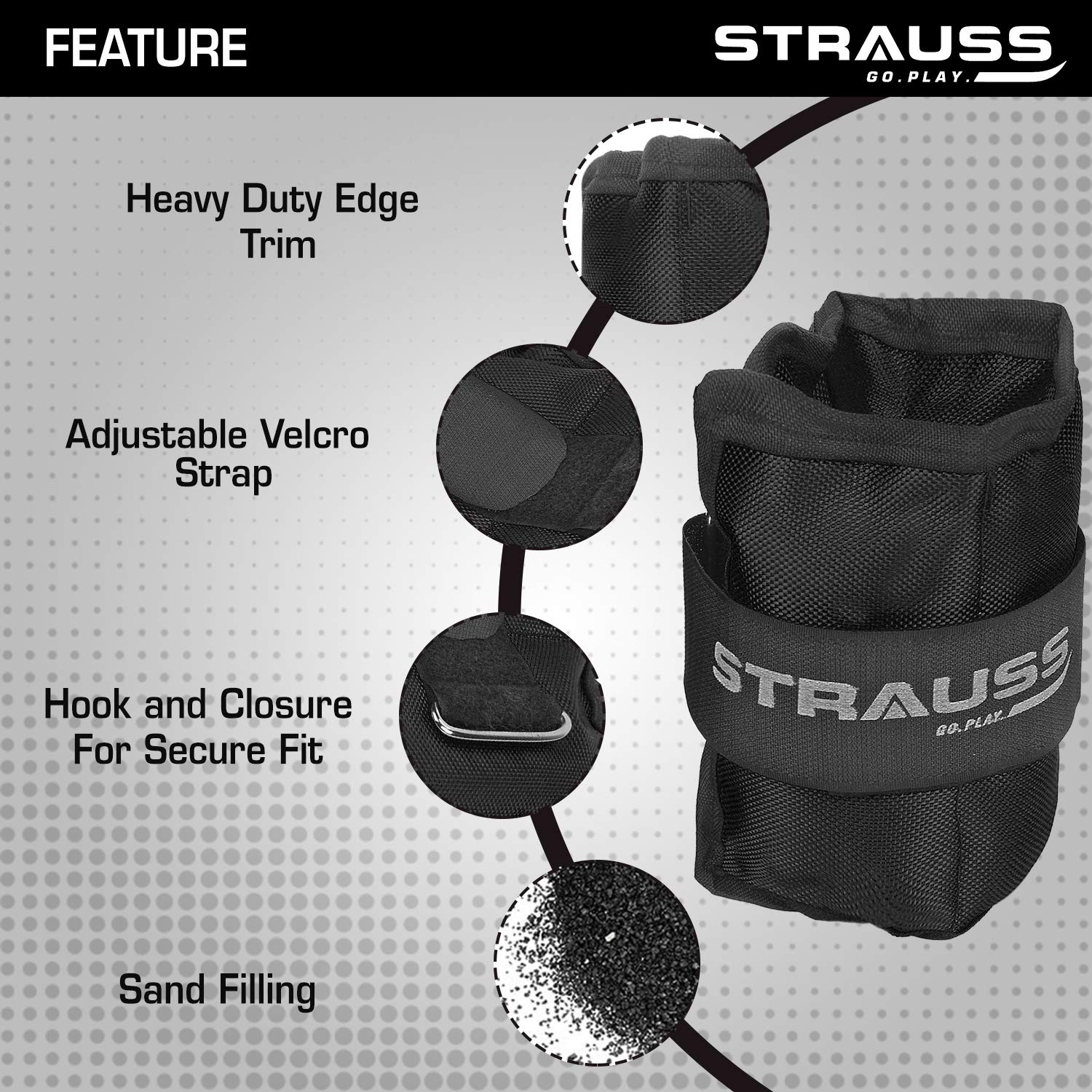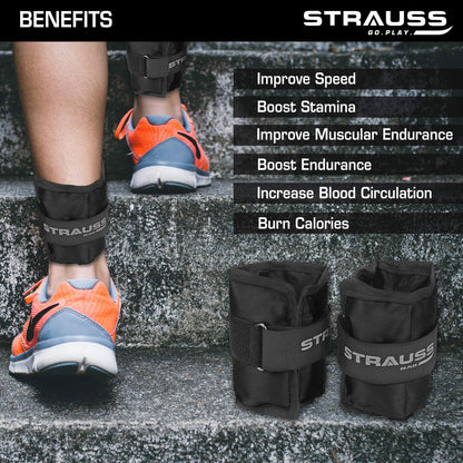 Strauss Adjustable Ankle/Wrist Weights 0.5 KG X 2 | Ideal for Walking, Running, Jogging, Cycling, Gym, Workout & Strength Training | Easy to Use on Ankle, Wrist, Leg, (Black)