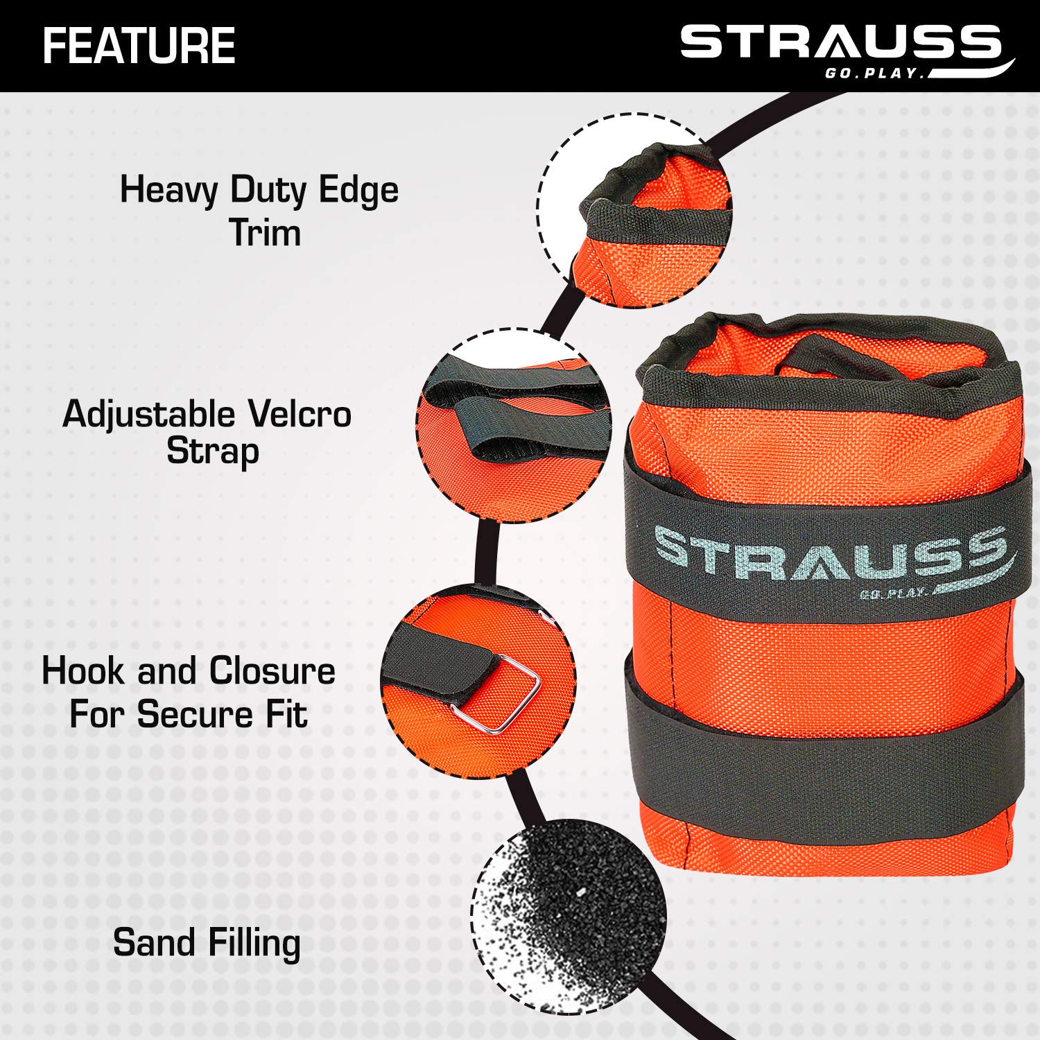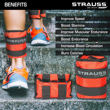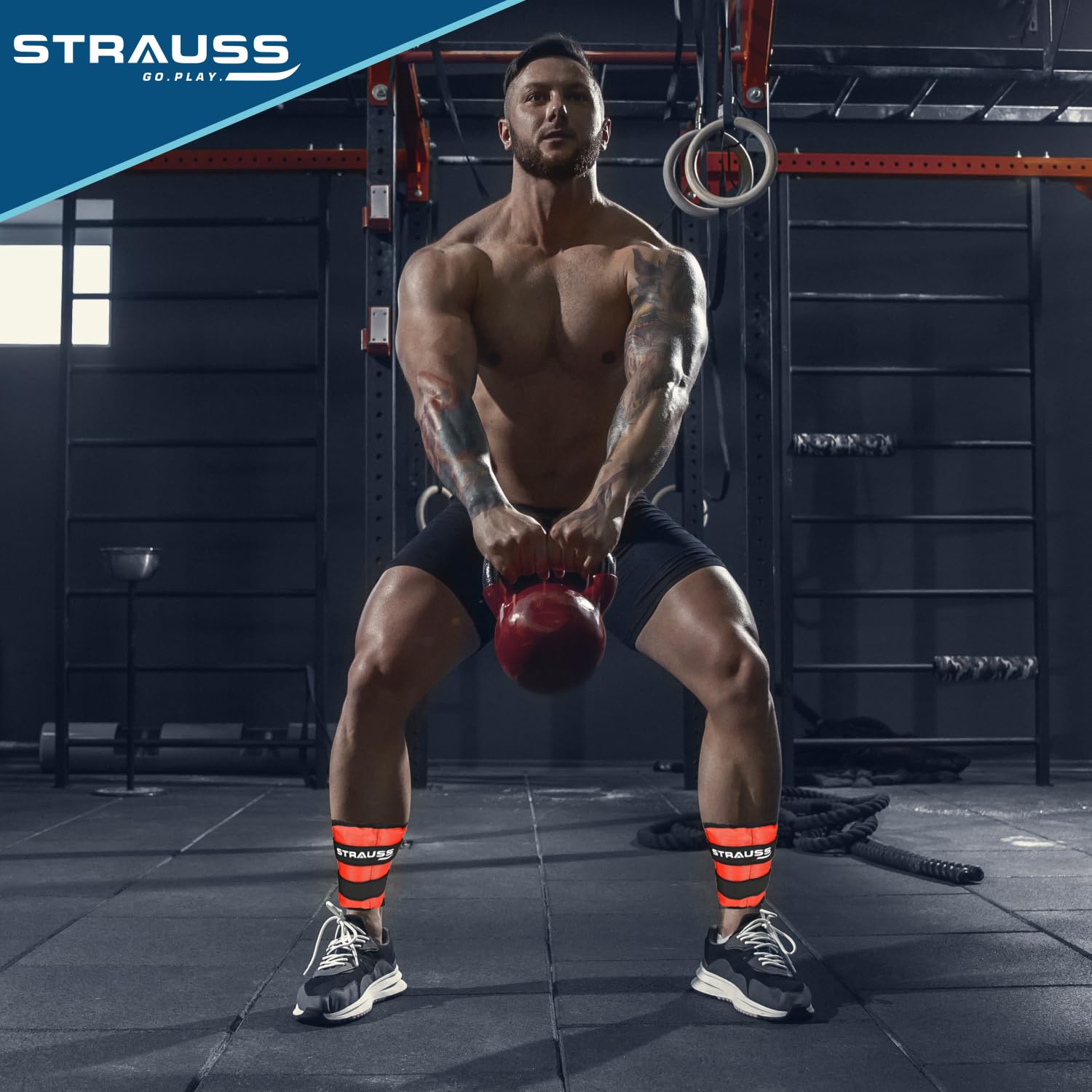Strauss Adjustable Ankle/Wrist Weights 2.5 KG X 2 | Ideal for Walking, Running, Jogging, Cycling, Gym, Workout & Strength Training | Easy to Use on Ankle, Wrist, Leg, (Orange)
