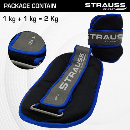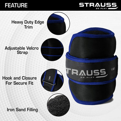 Strauss Ankle Weights for Exercise & Fitness|Adjustable Round Belt Design|Leg Weights for Strength Training,Walking Running, Jogging,Exercise & Gym Workout|Comfortable & Durable| 1Kg(Each)(Blue Pair)