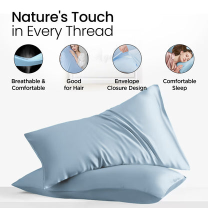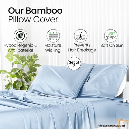 Bamboo Pillow Cover Set of 2 | 100% Bamboo Pillow Cover for Hair and Skin | Breathable, Silky Soft and Cooling Envelope Pillowcases for Hot Sleepers & Night Sweats | 17"x27" (250 TC, Pastel Blue)