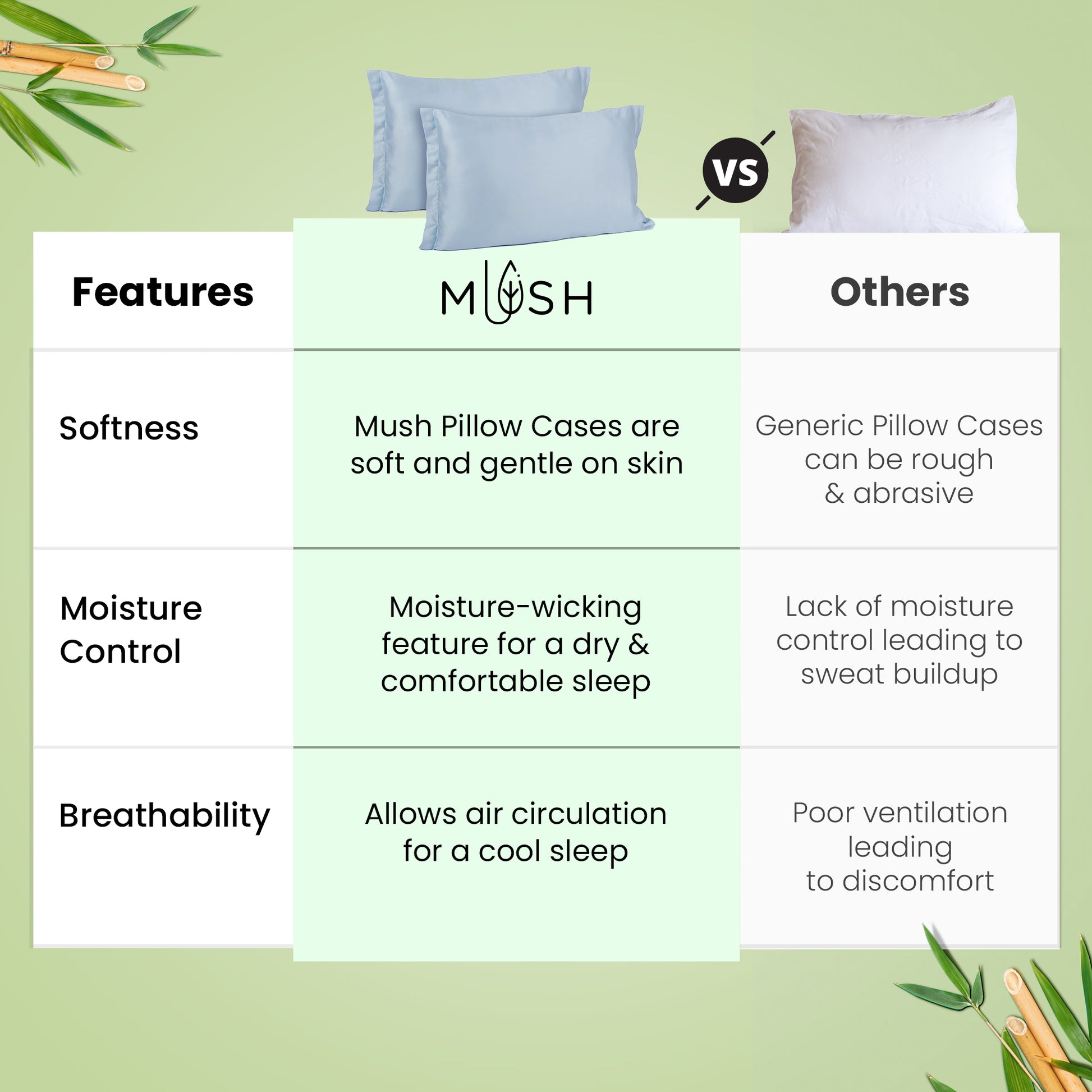 Transform your nightly routine with the Mush Bamboo Pillow Cover Set. Sleep better, wake up refreshed, and enjoy the luxurious feel of bamboo fabric with every rest.