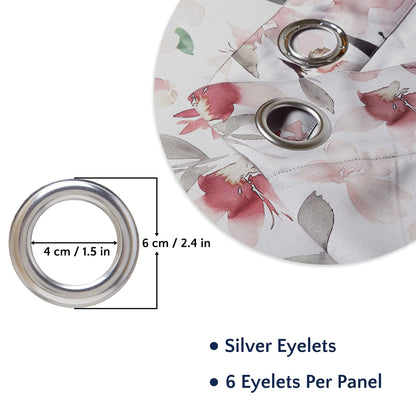 Homes Long Door Curtains (8 ft, 2 Panels) I Semi-Blackout 85% Room Darkening I Floral Print on Silver Ground I 6 Eyelets I Sound & Heat Reducing - F1 Neutral