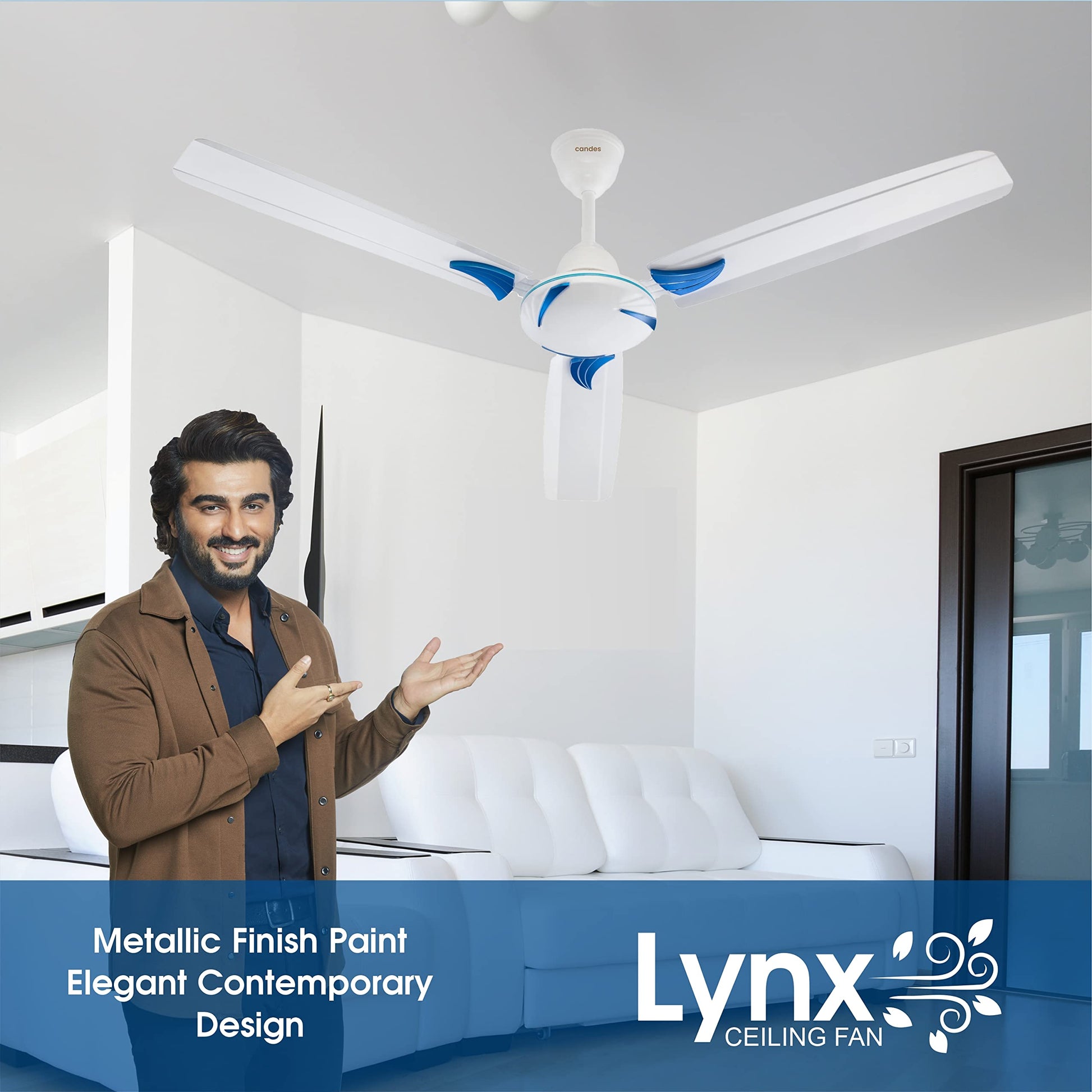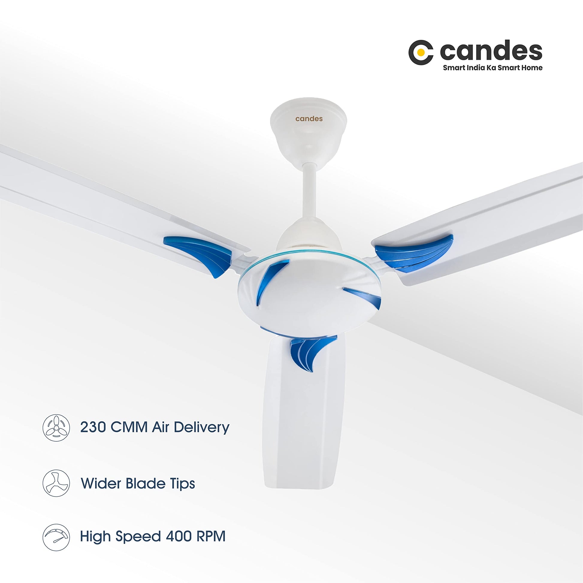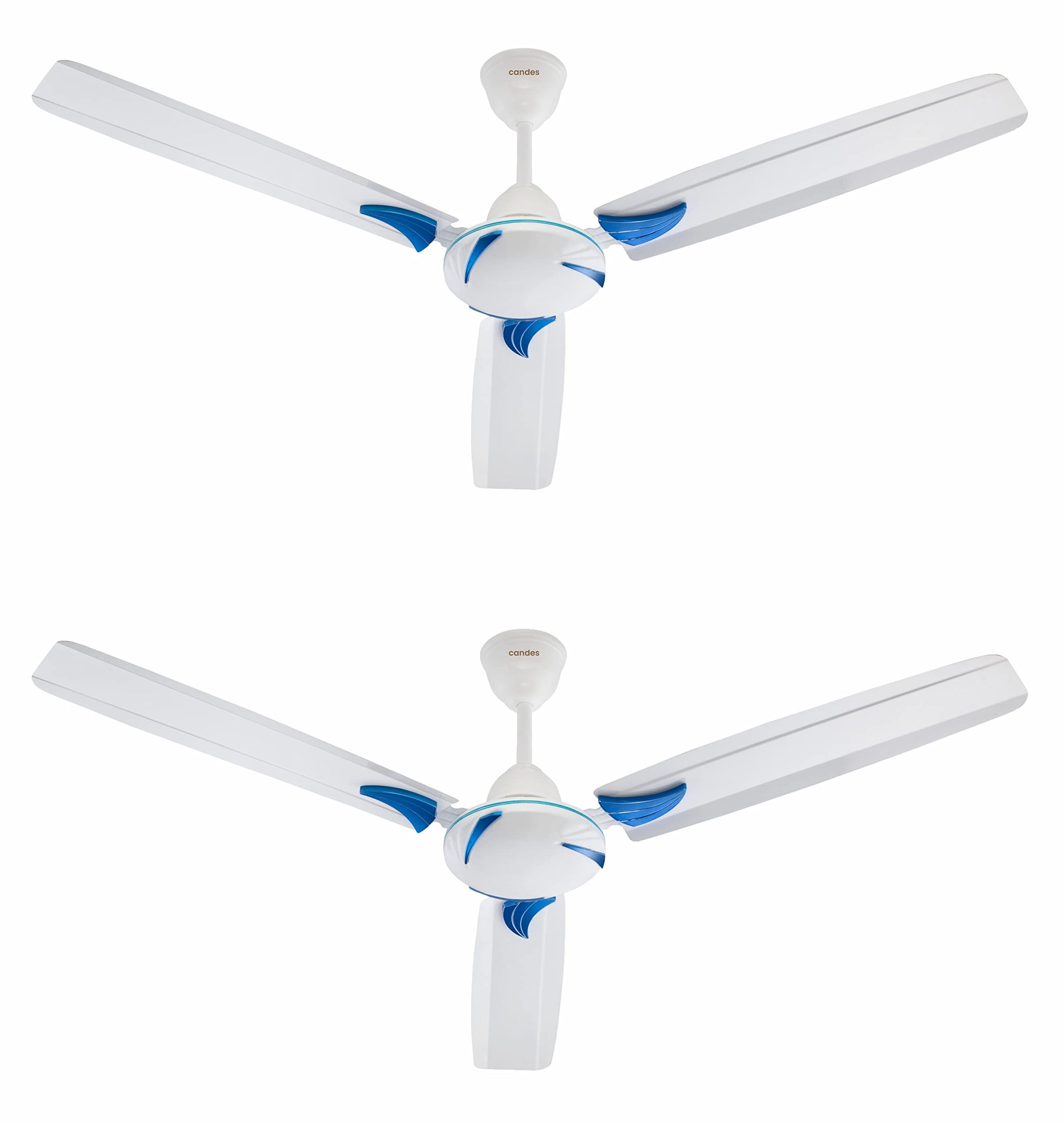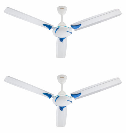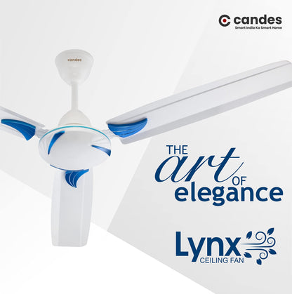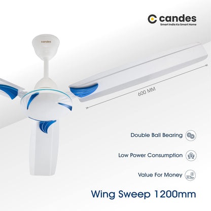 Candes Lynx Ceiling Fans For Home 1200Mm / 48 Inch | Bee 3 stars Rated, High Air Delivery, Noiseless & Energy Efficient | 1+1 Years Warranty | Blue White, Pack 2
