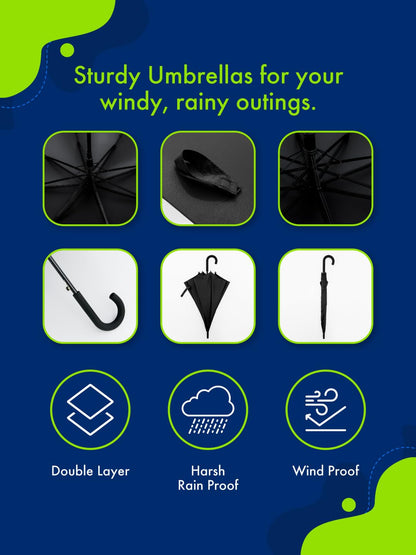 ## Stay Protected in Style Introducing the **Pack of 2 Unisex Folding Umbrellas** by **Absorbia**, designed to provide exceptional protection against rain and sun. This set includes a straight umbrella and a 3X folding umbrella, both in a sophisticated black color, ensuring you stay stylish no matter the weather. Made with durable polypongee fabric, these umbrellas are both windproof and reliable, making them perfect for daily use. Compact and portable, they are easy to carry, complete with a protective cover for added convenience. These umbrellas can be used in a variety of situations including: * Daily commutes * Travel and vacations * Outdoor events * Everyday errands ### Key Features: * **QUALITY CONSTRUCTION:** The ABSORBIA umbrellas feature a strong black metal shaft and fibreglass ribs that resist breaking in strong winds. * **EASY TO CARRY:** With a slip-resistant rubberized handle and wrist strap, our umbrellas provide excellent control and comfort during use. * **COMPACT DESIGN:** No need to compromise on size—these umbrellas are both lightweight and compact, ensuring convenience when on the go. * **TRUSTED BY MILLIONS:** Over 20,00,000 users trust ABSORBIA for their moisture protection needs, making it a reliable choice. ### Suitable For: Perfect for adults, these umbrellas are an essential accessory for anyone looking to stay protected from the elements while maintaining a stylish appearance.