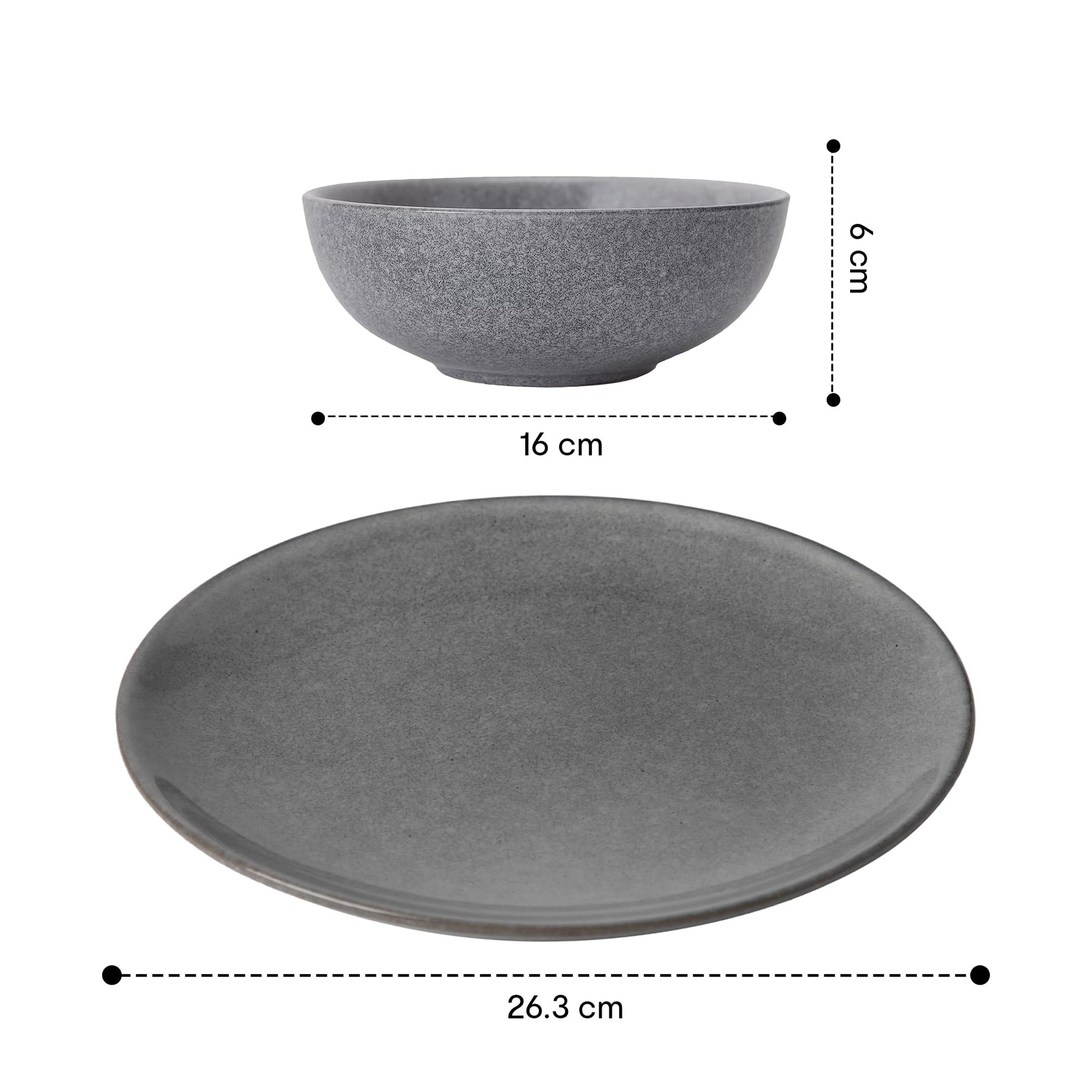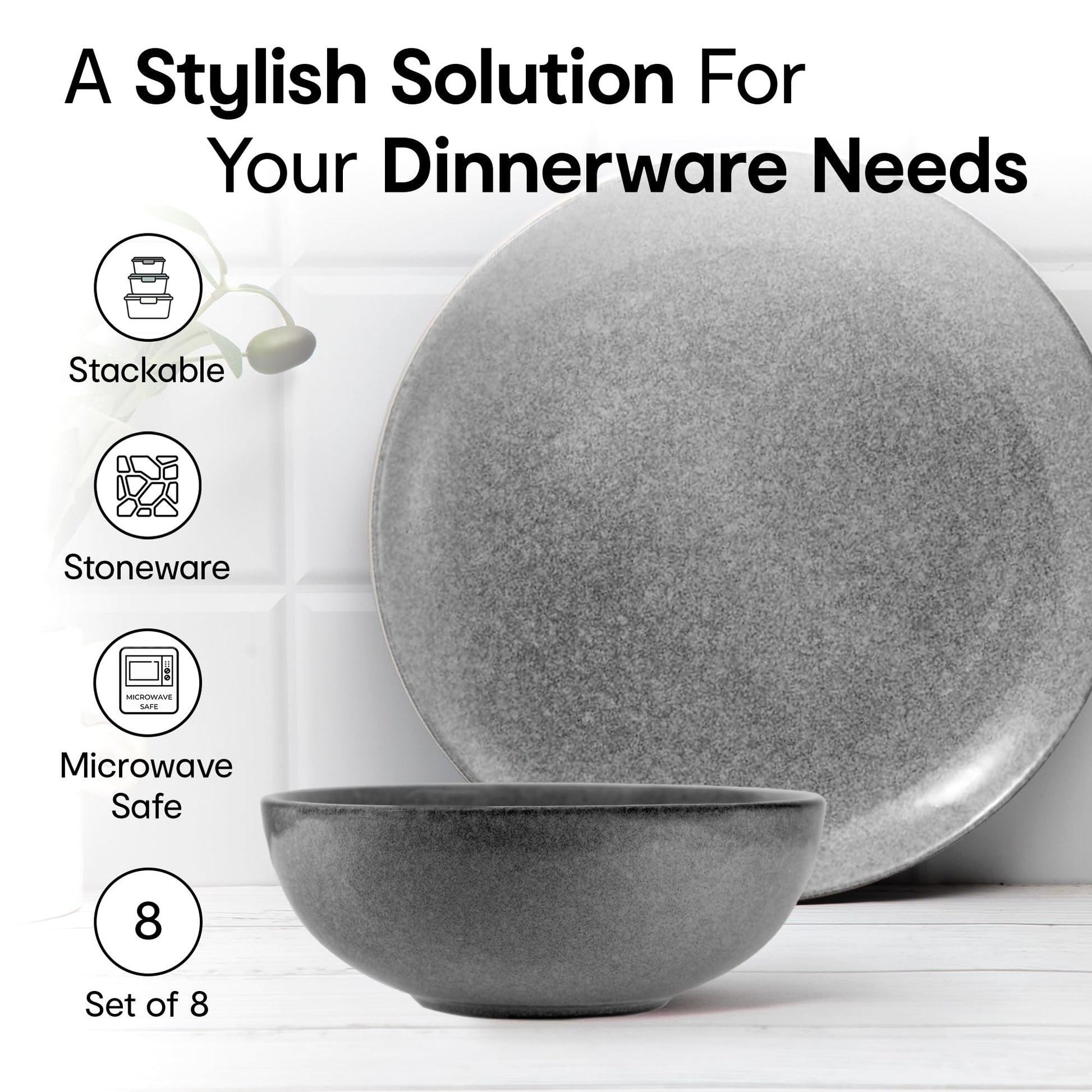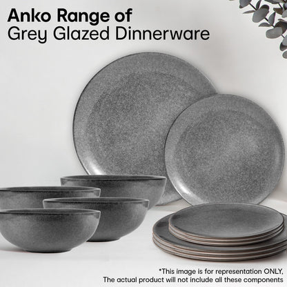 Anko Glazed Solid Stoneware 8 Pcs Dinner Set Premium Crockery For Dining Table, Home, Restaurant, Gifting Aesthetic Tableware Service Set For 4 4 Dinner Plates, 4 Bowls, Grey