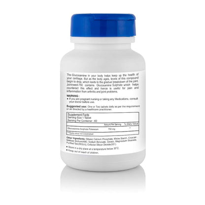 Introducing the Healthvit Glucosamine Jointneed 750 by Healthvit, your ideal companion for joint health! Each pack contains 60 tablets, and purchasing a pack of 2 gives you double the advantage for maintaining optimal joint function and relief from discomfort. Formulated with Glucosamine Sulphate and Boswellia, these tablets are manufactured in a GMP-certified lab ensuring quality and effectiveness. Ideal for anyone who leads an active lifestyle or experiences joint pain, these small and easy-to-swallow tablets are your go-to solution.