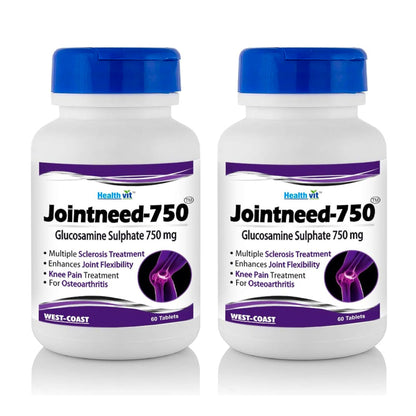 Pack of 2: Healthvit Glucosamine Jointneed 750 - Joint Support | 60 Tablets | Post Workout Supplement