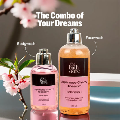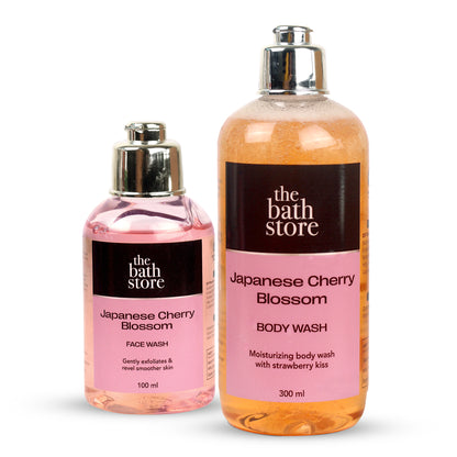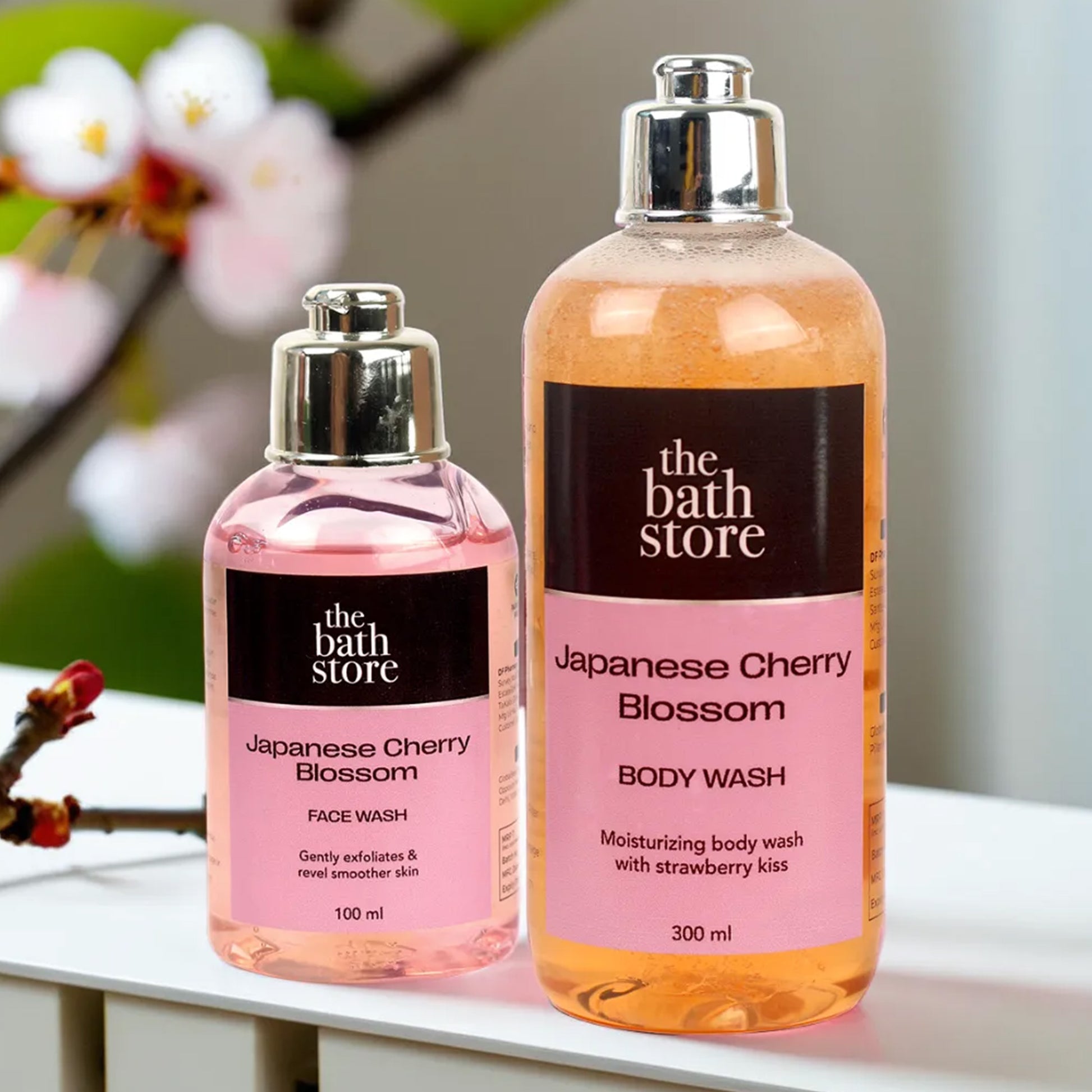The Bath Store Japanese Cherry Blossom (Face Wash + Body Wash) Pack of 2 | Face Wash & Body Wash For Men & Women | For all Skin Types - Cleanser For Face & Exfoliating Body Wash