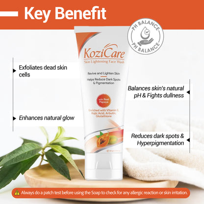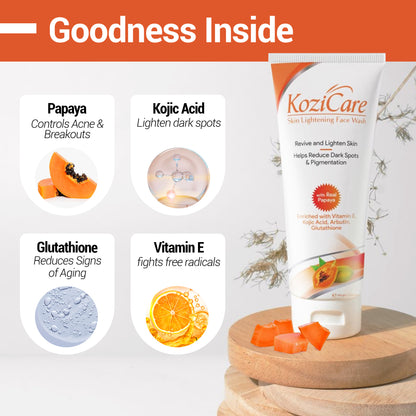 Kozicare Kojic Acid Face Wash & Glutathione Face Wash | Papaya Face Wash | Acne Wash for Glowing Skin | Face Wash for Women & Men | Face Cleanser & Skin Care - 100 Ml