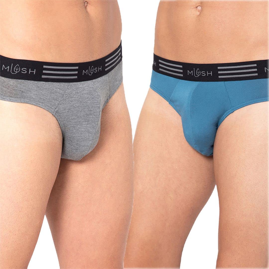 Mush Ultra Soft, Breathable, Feather Light Men's Bamboo Brief || Naturally Anti-Odor and Anti-Microbial Bamboo Innerwear Pack of 2 (XL, Blue and Grey)