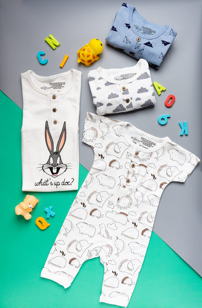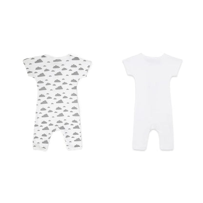 Introducing the Mush Ultra Soft Bamboo Unisex Short Sleeve Romper Combo Set, designed with love by Mush. This delightful pack of 2 rompers comes in charming colors - Stary Night and Daylight - perfect for your little one aged 0-3 months. Made from sustainable bamboo fabric, these rompers offer a plush texture that keeps your baby cozy and comfortable.