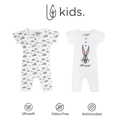 Mush Ultra Soft Bamboo Unisex Short Sleeve Romper Combo Set for New Born Baby/Kids Pack of 2 (0-3 Months, Stary Night & Daylight)