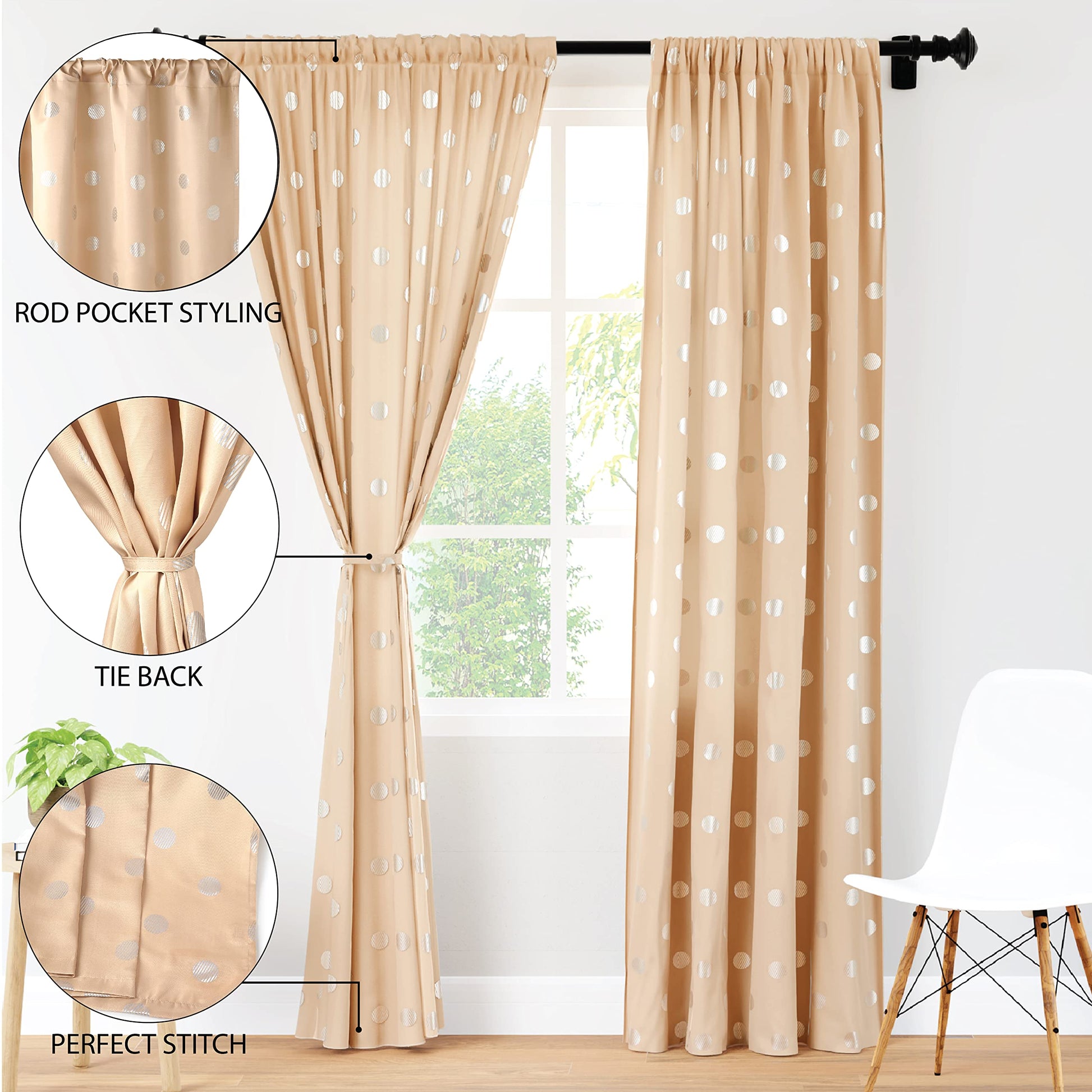 Homes Polyester Printed Door Semi Sheer Curtain For 7 Ft With Tie Back, Rod Pocket, Light-Filtering, Curtains For Kitchen, Bedroom, Living Room (140X213 Cm), Dollar Beige, Set Of 2