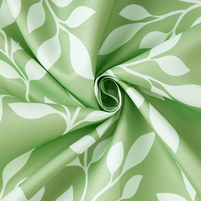 Pack of 2: Polyester Printed Door Curtains - Light-Filtering, Tie Back | 7 ft | Reverse Leaf Green