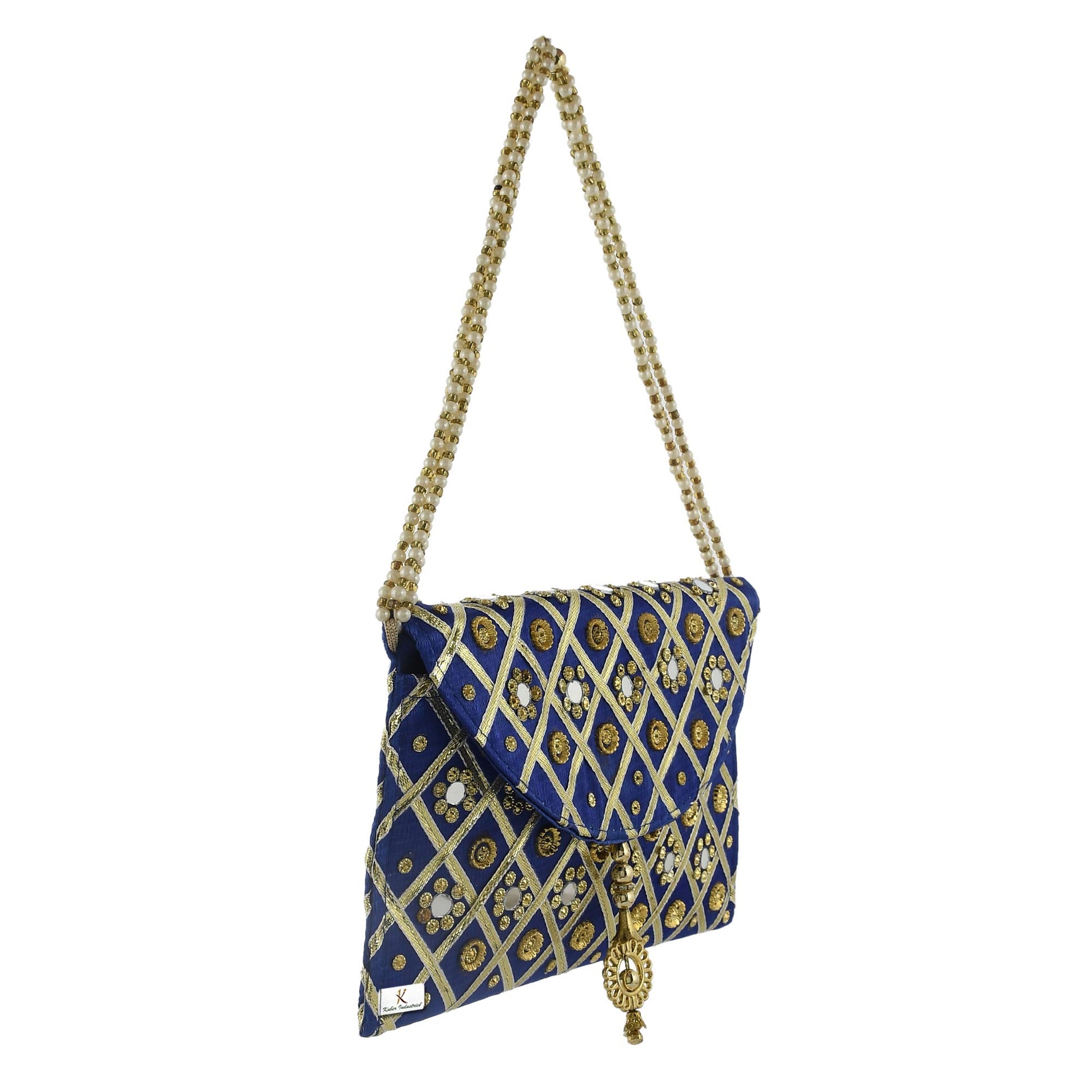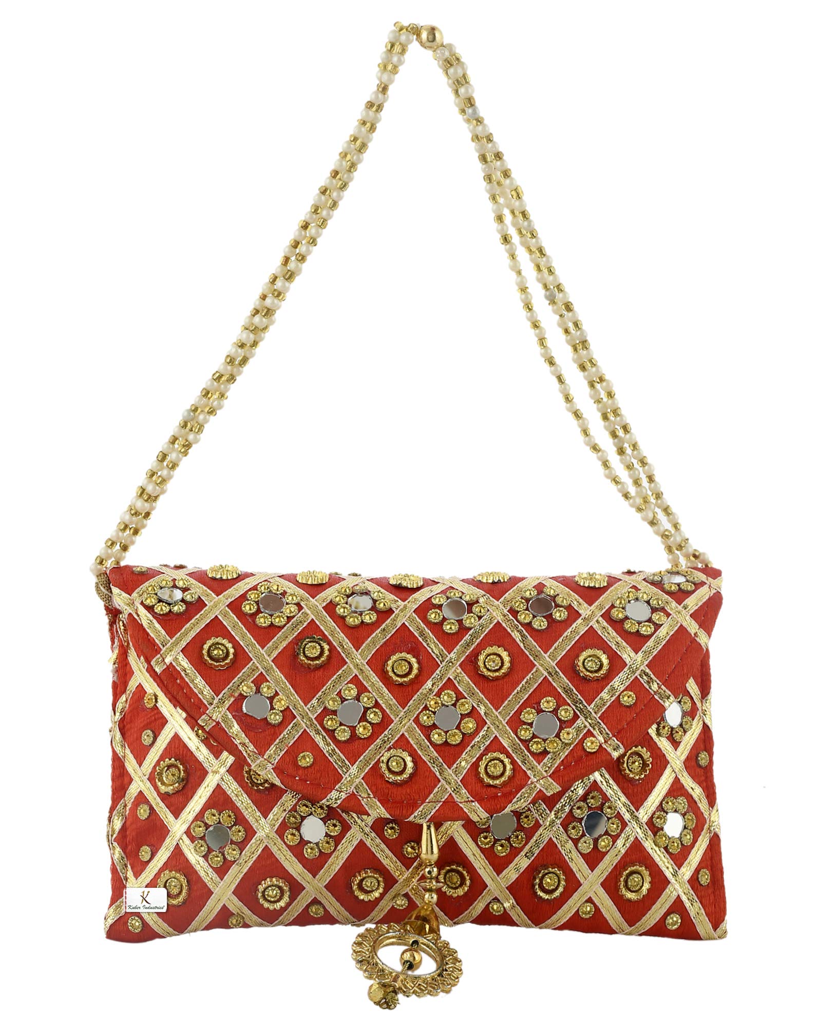 • Ethnic Design: The traditional mirror work and embellishments such as sequins, beads, and pearls make these clutches a unique fashion statement.
